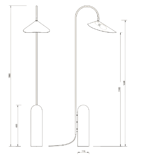 大理石燈座設計,不僅為桌罩上下轉動時帶來穩定的作用、同時也為質感加分。細頸、不對稱的燈罩設計,靈感取自海芋自然包覆、翻捲的花瓣與神態,將自然融入燈具中。