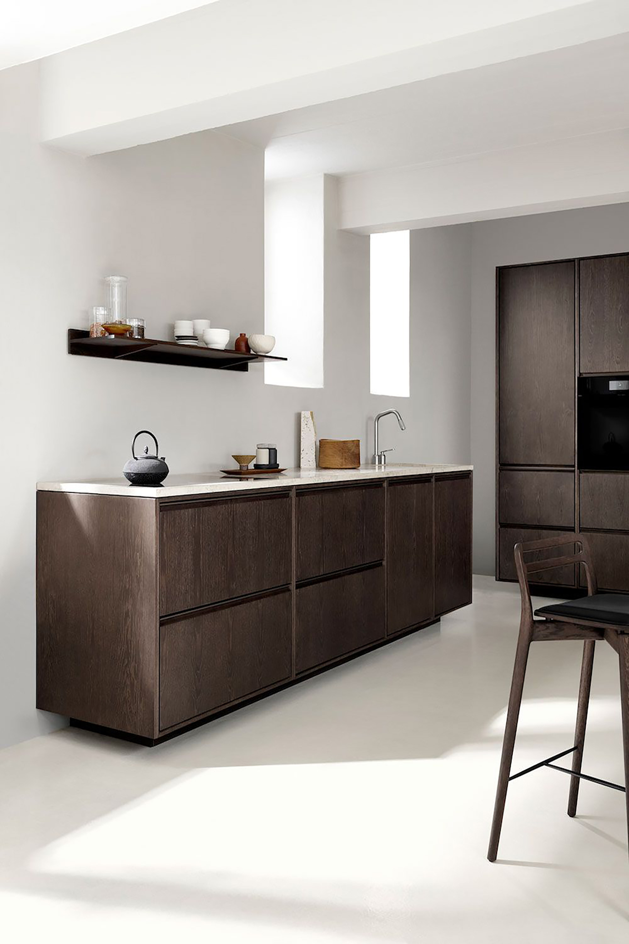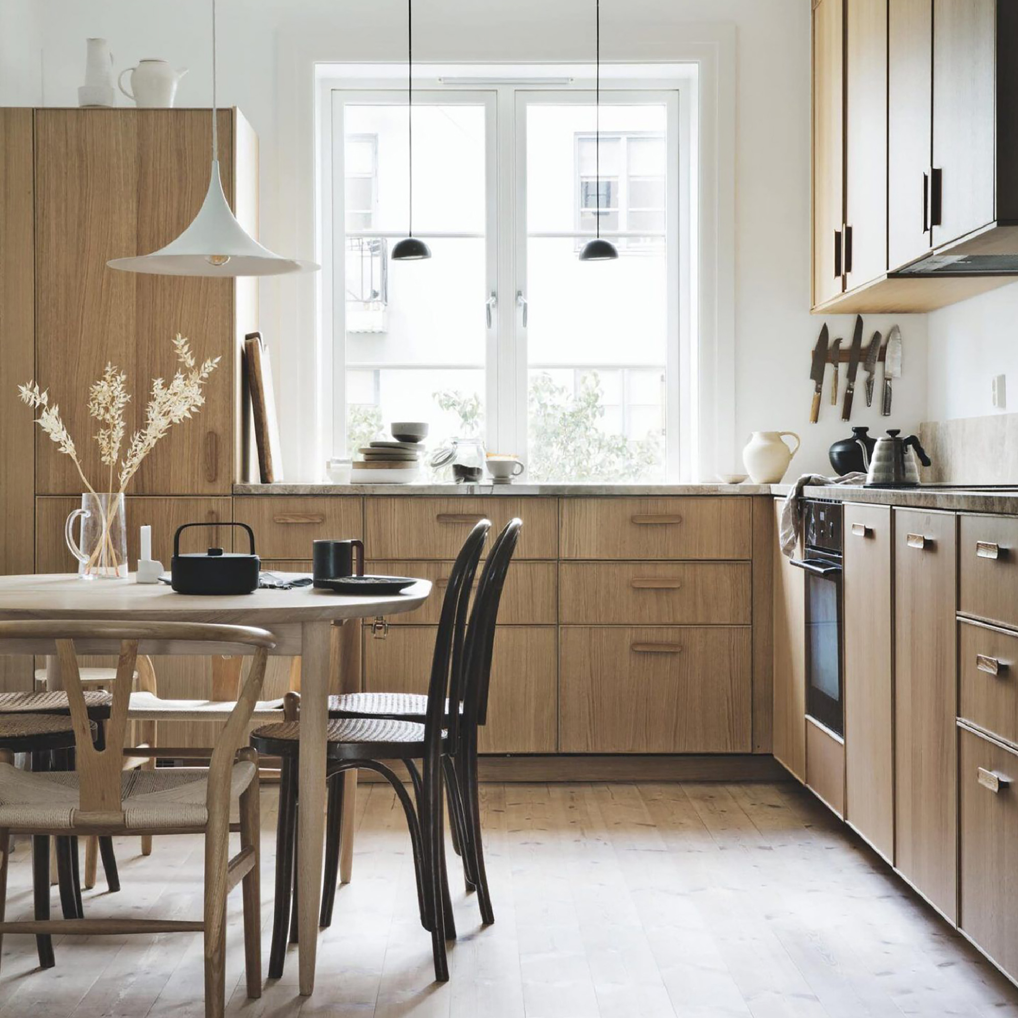 以天然材質相互搭配使用,創造彈性多元的組合,帶來出眾的獨特品味。絕佳的混搭效果,彰顯迷人無比的精緻美學,為廚房空間增添北歐經典的優雅態度。