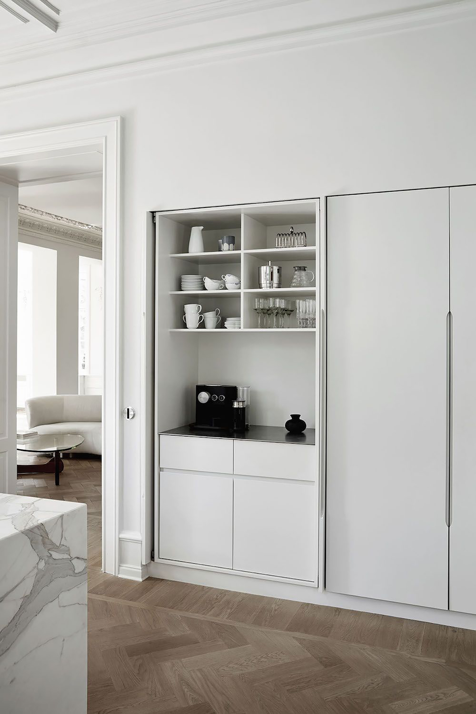 常見的櫥櫃收納,除了經典款的封閉式設計,簡約的半開放式層板櫃將會是另一個現代風格新提案。