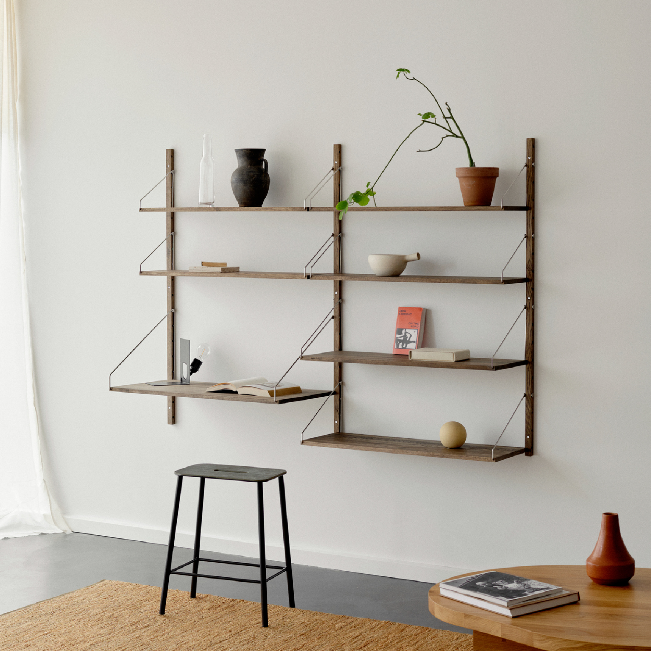 甚至還有為小空間量身打造的壁掛式書桌,強調多功能設計,作為展示或收納層架也可以,創造獨一無二的視覺層次,到哪都能輕鬆打造專屬的小型辦公天地。