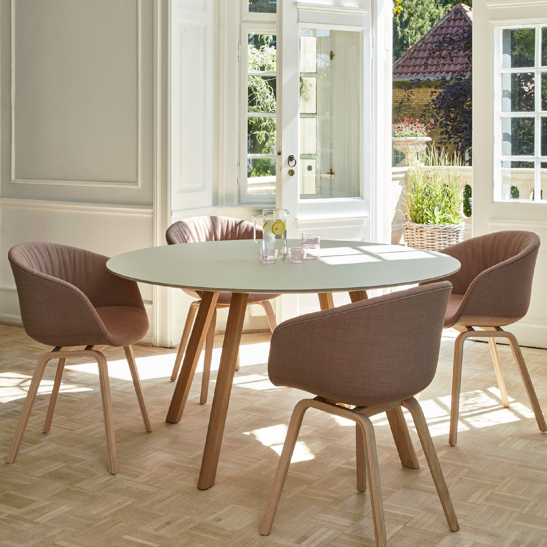 最常見的非方形餐桌莫屬,可靠牆或置於中島,讓使用面積最大化 ; 也能挑選有延長桌版的長桌,帶來更多元的彈性變化。亞洲人熱愛的經典圓桌,圓潤造型增添柔和氣息,在視覺上更有放大空間的效果。