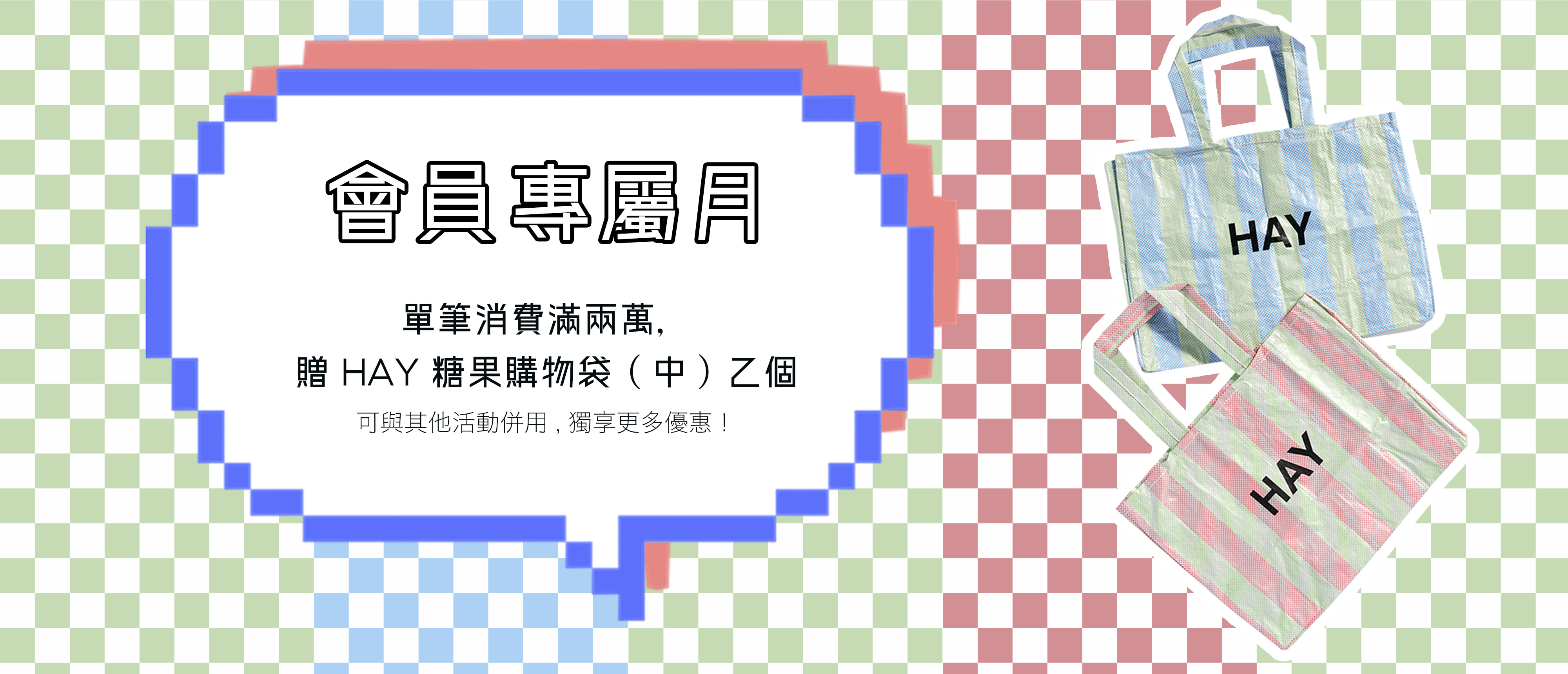 凡於 Design Butik 門市、官網單筆消費滿 $ 20,000,贈 HAY 糖果購物袋 ( 中 ) 乙個!
