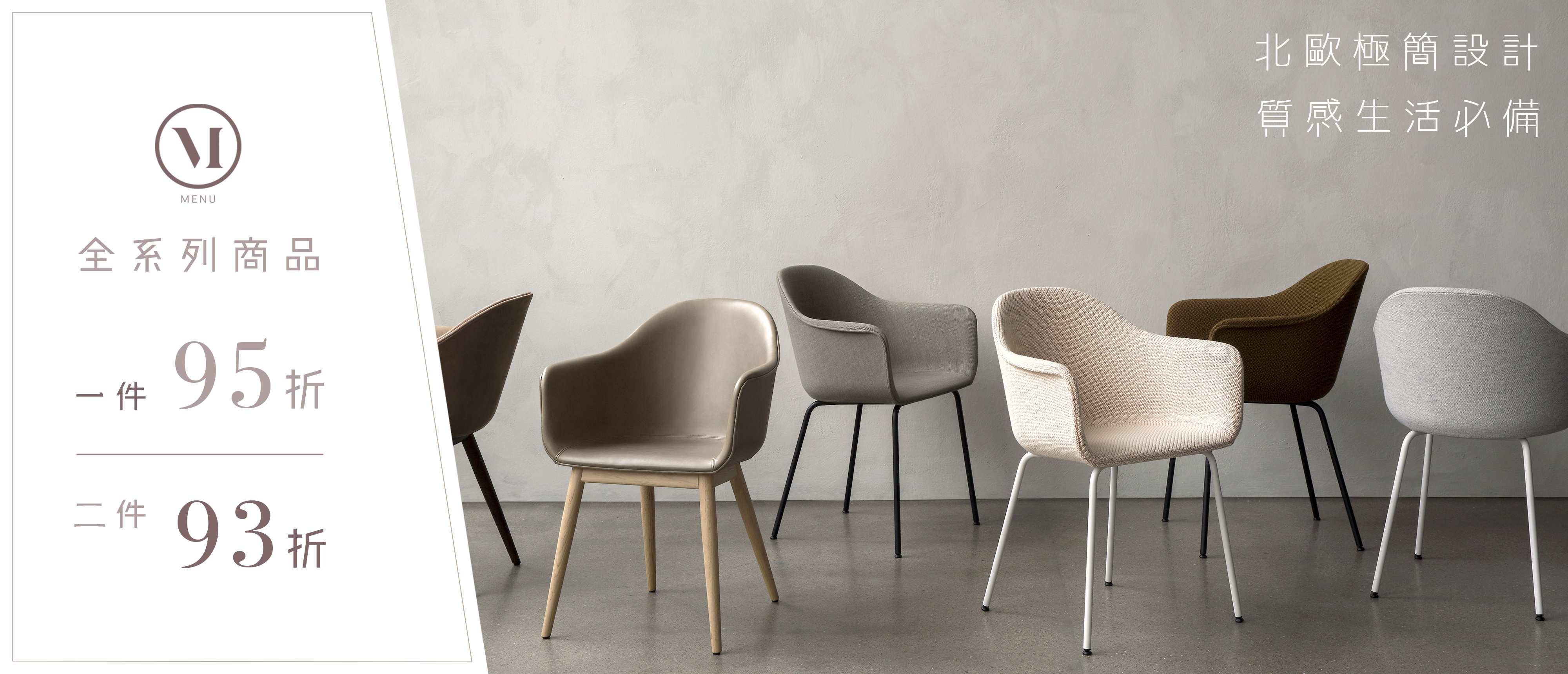俐落線條與簡約風格,再加上不可或缺的獨特創意性,讓 Menu 的家具與家飾品成為質感生活必備的完美裝飾!