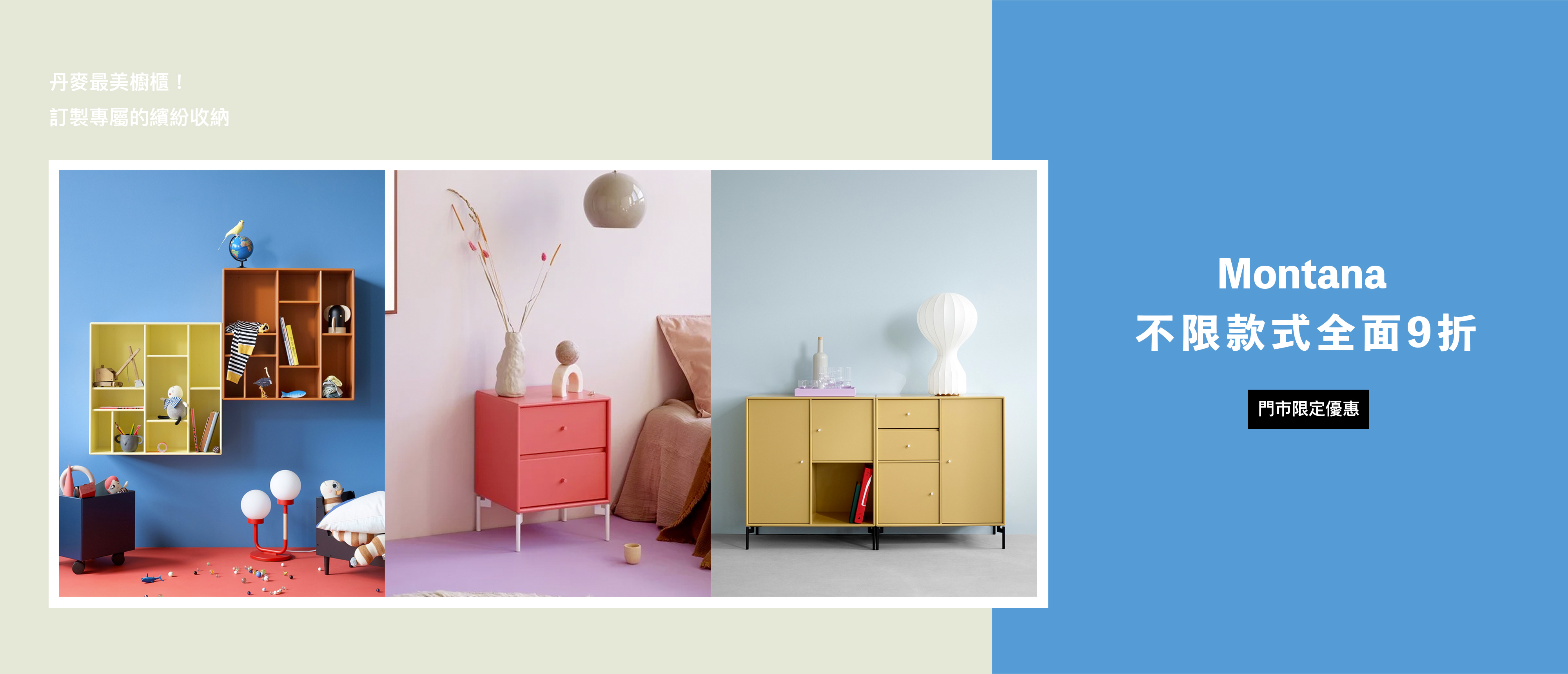 > 即日起凡於民生門市購買 Montana 櫃款均享 9 折優惠。由專人為您繪製獨一無二的設計櫥櫃 <