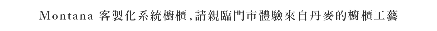 Montana 系統訂製櫥櫃引以為傲的不僅是簡約的北歐設計美感與超高丹麥製造品質,而是超越訂製的設計---讓你參與於設計之中,親自繪製你心中櫥櫃的樣貌。