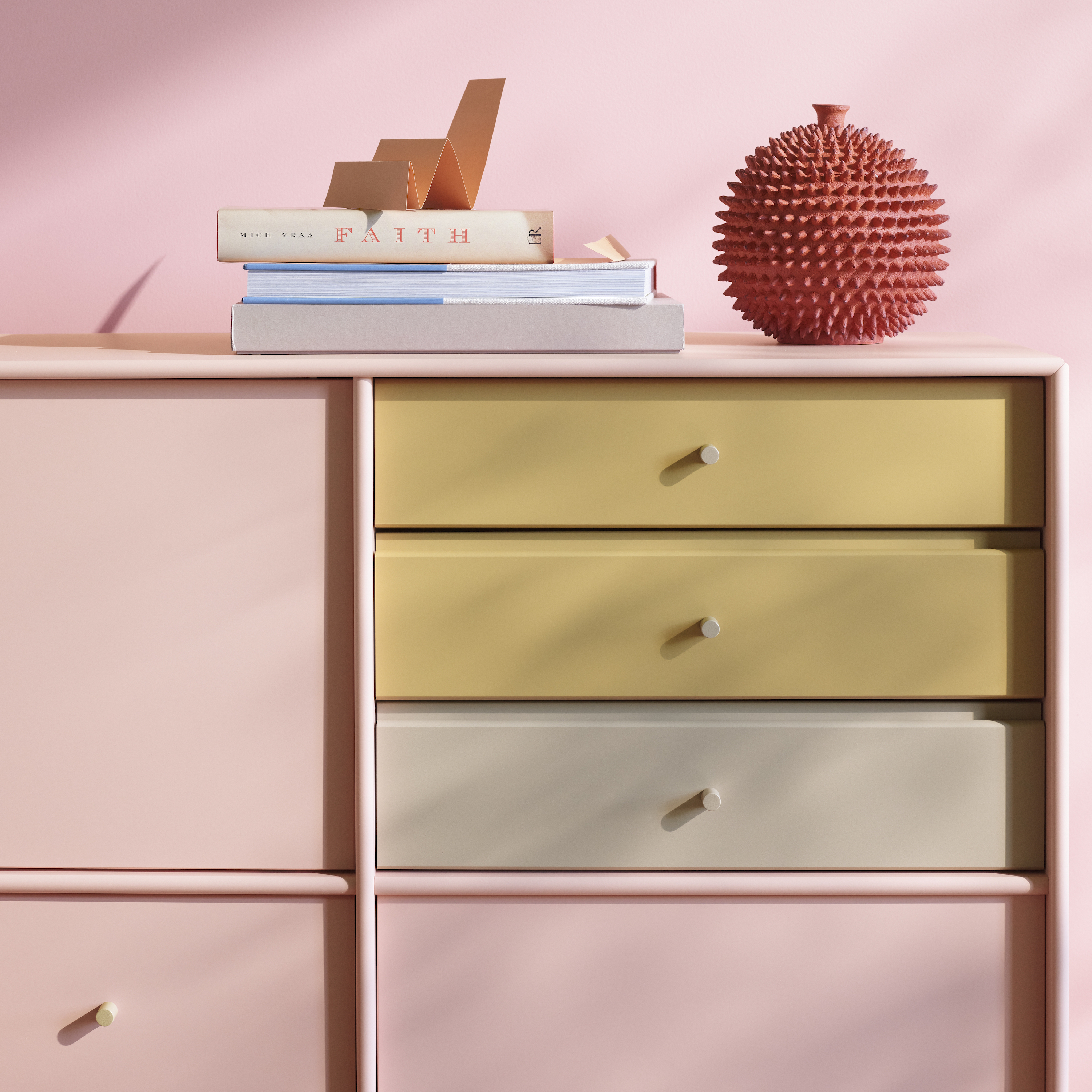 Montana 擁有高達47種顏色與不同木料板材,絕對找得到你所喜愛的顏色。更貼心的是,在櫃體上任何面積都可以客製不同色彩,且客製不同顏色不加收費用,還有十年色彩保固。家中的櫃子不在單調死板,用色彩點亮你的收納生活。
