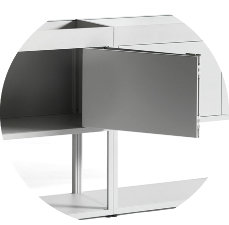 可以自由選擇哪一層要加門片 / 背板,讓櫃子的使用情境更加多元,還可以再加上托盆式頂板一起使用,讓櫃子變化更多豐富。無論是辦公空間或是居家的各種收納需求,New Order 都能幫您化繁為簡,解決你的收納問題!