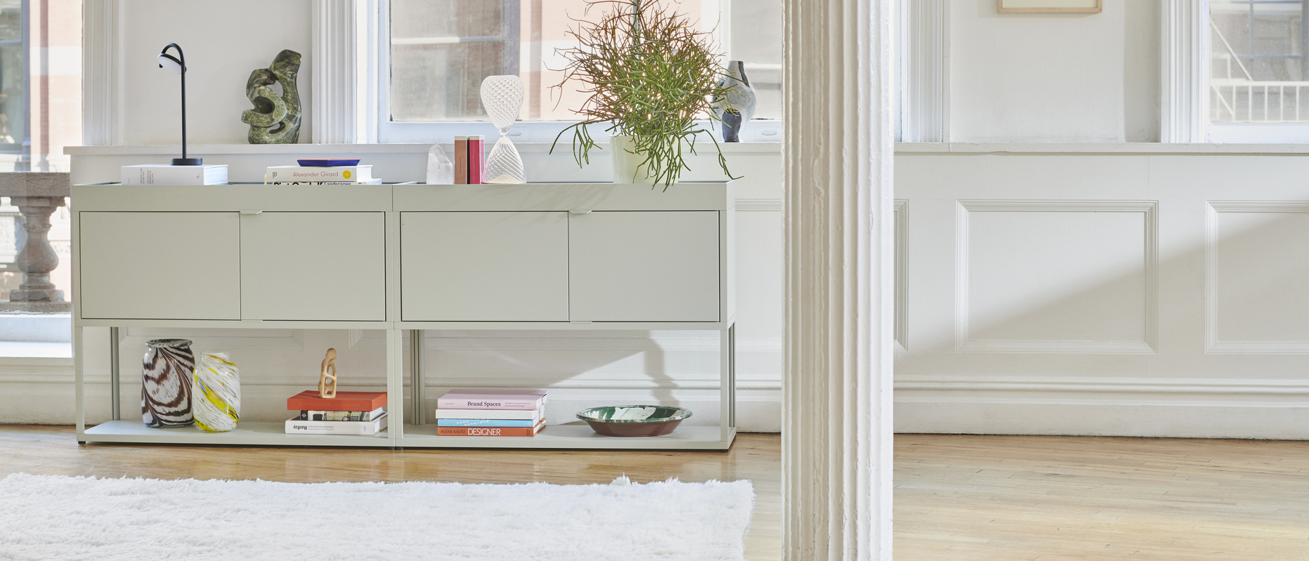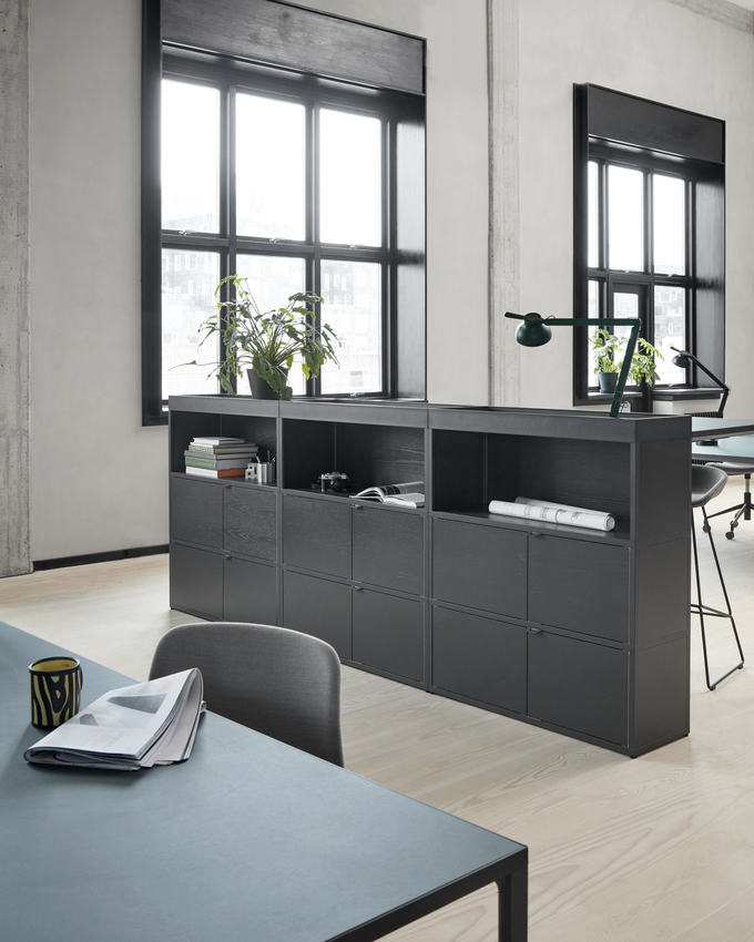由設計師 Stefan Diez 所設計,以簡單的「支架+層板」作為基礎,再加上各式配件,組合而成豐富多變的樣貌。可以作為書櫃、事務櫃、收納櫃、還可以加上桌板,自由組合成完整的辦公系列,不僅可以辦公室使用,還可以融入居家生活中,打造生活中的「新秩序」!