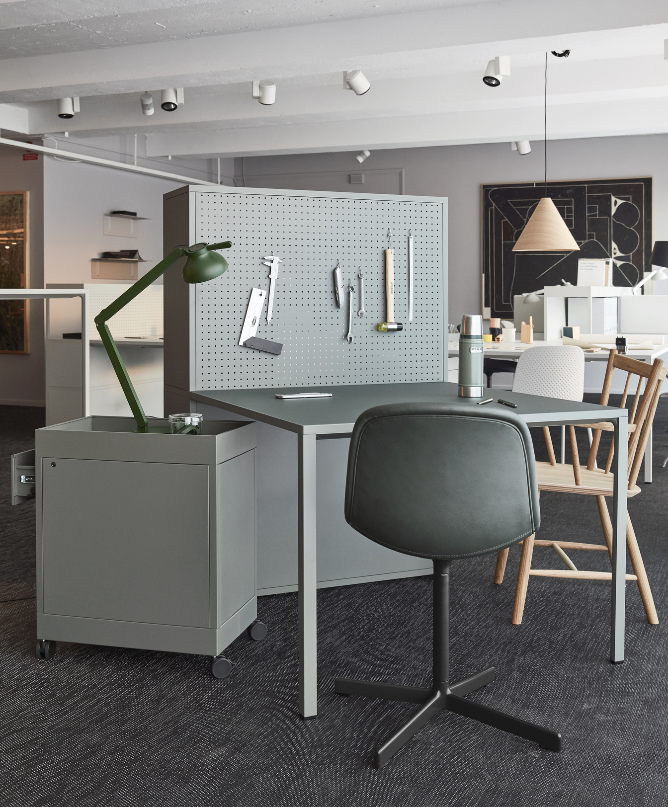 New Order 工作桌是以金屬桌框+亞麻油氈面材組合而成,不僅可以單獨使用,更可以與 New Order 櫃款連結,更有效利用空間,打造絕佳整體感!