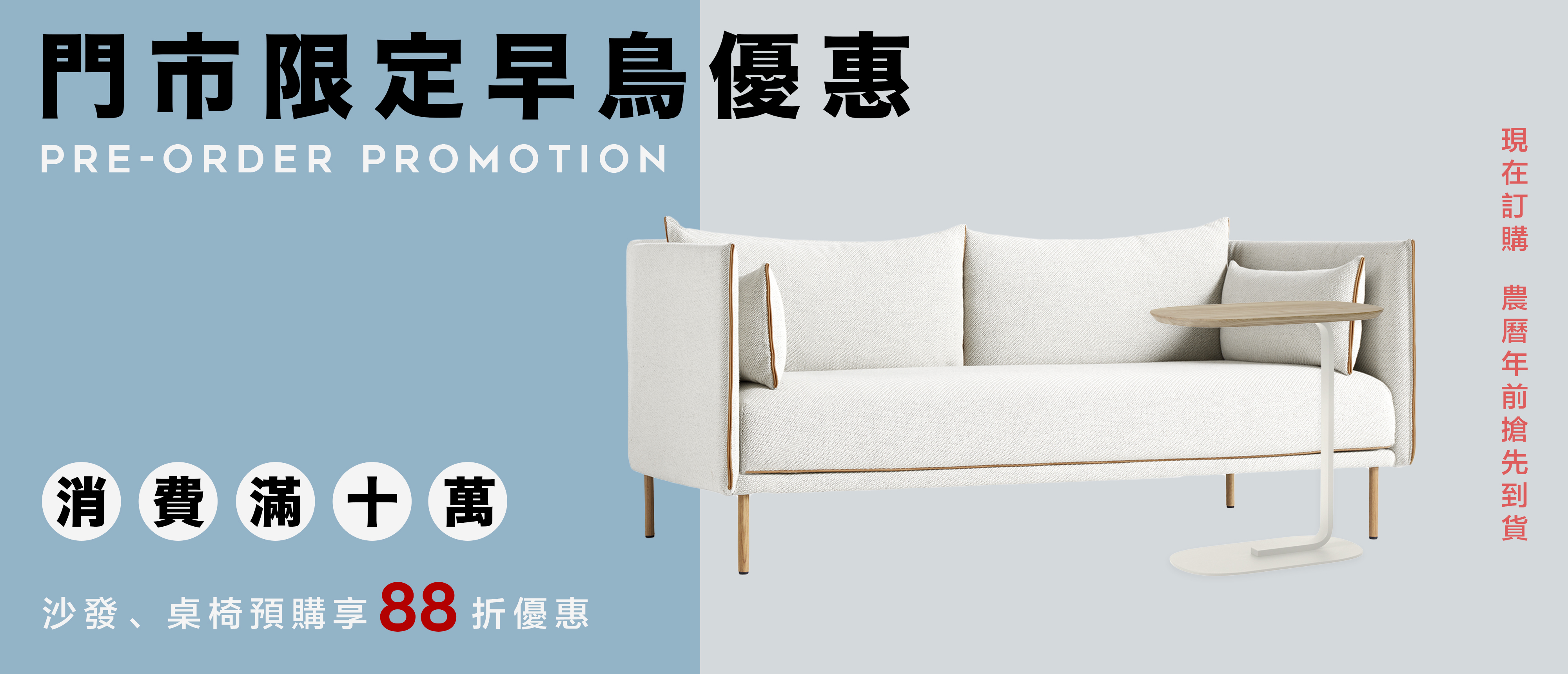 消費滿十萬,訂製沙發、桌椅預購即享 88 折優惠!