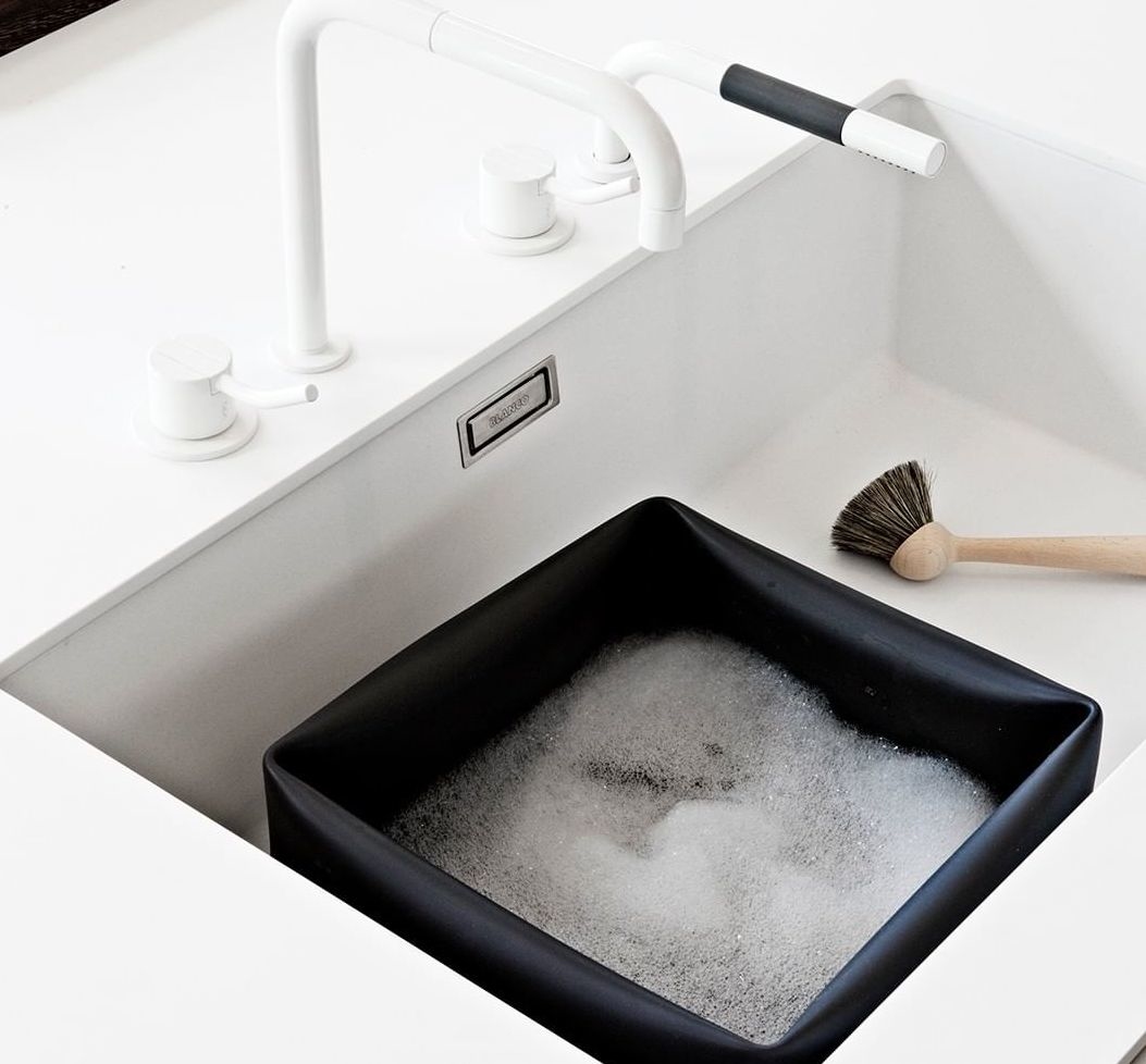 一次清潔大量碗盤,使用洗碗藍能一次搜集、浸泡、沖洗。「洗心革面」洗碗藍就是因著大量情節碗盤而生。矽膠材質不怕因為擠壓而碰傷餐瓷,還附上洗碗鬃毛刷,減少雙手負擔,洗碗更有效率、再多人吃飯也不怕!