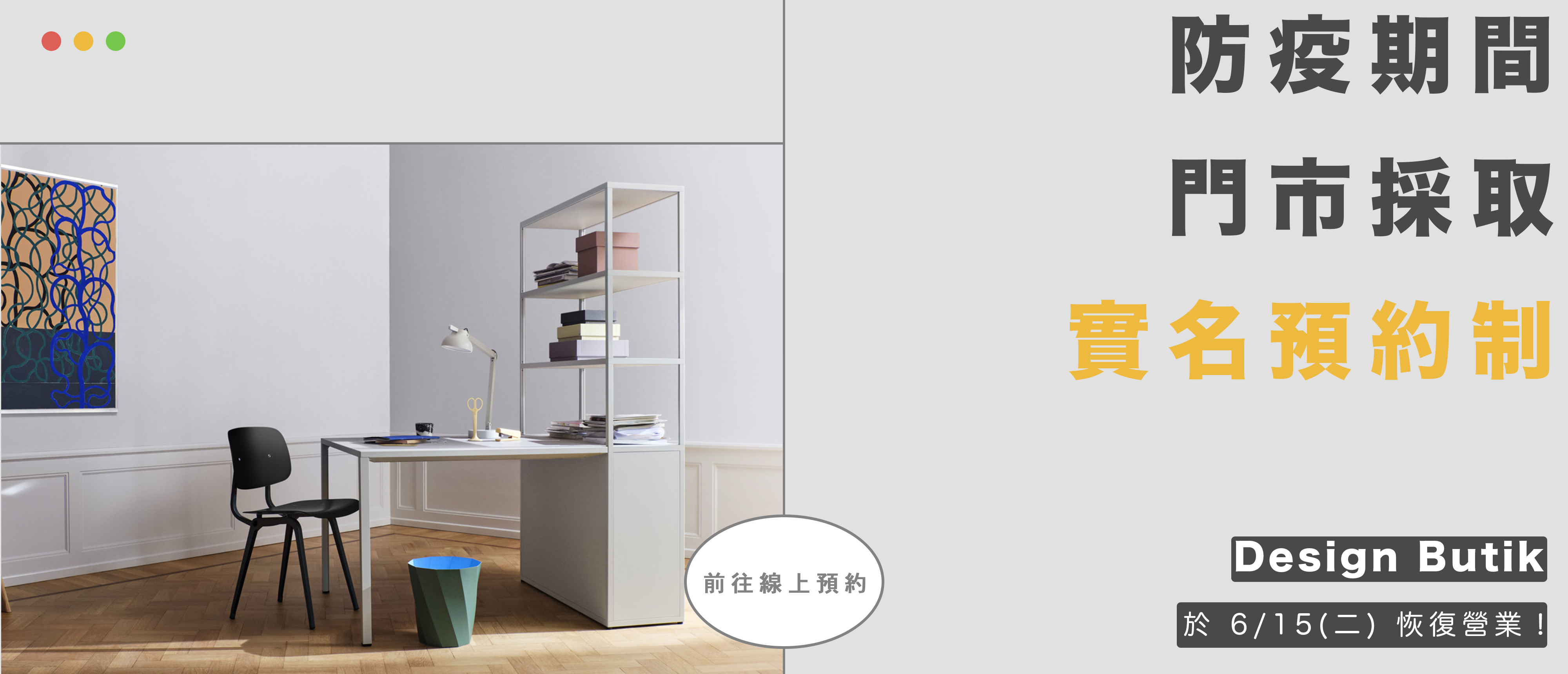 Design Butik 集品文創於 6 / 15 (二)恢復營業!防疫期間,門市營業時段,全程採取預約制。