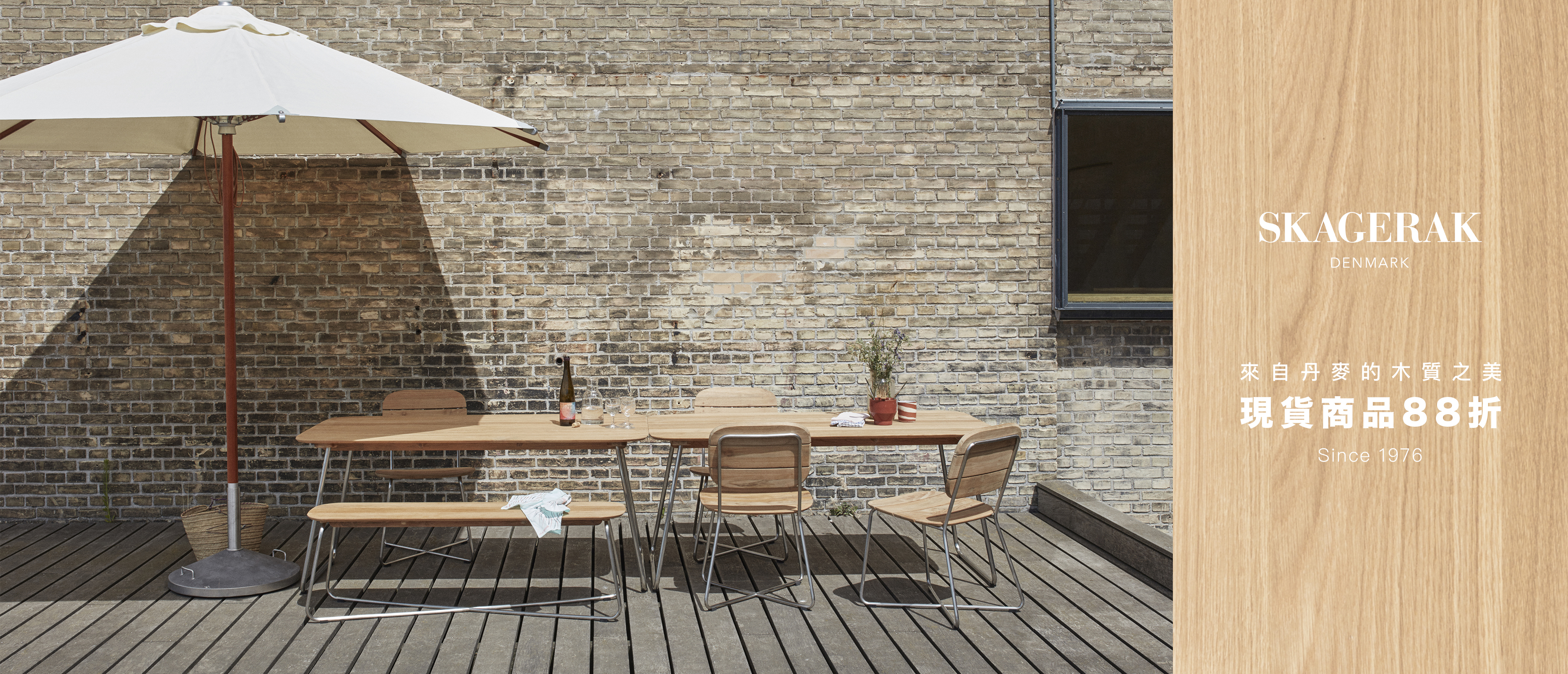SKAGERAK 多款經典作品,選用可防水的柚木材質,或搭配堅固的不銹鋼支架,帶來輕盈舒適的感受,為戶外生活增添不同的北歐情調。簡潔線條配上溫潤質地,在和煦陽光的照射下,享受愜意的寧靜。