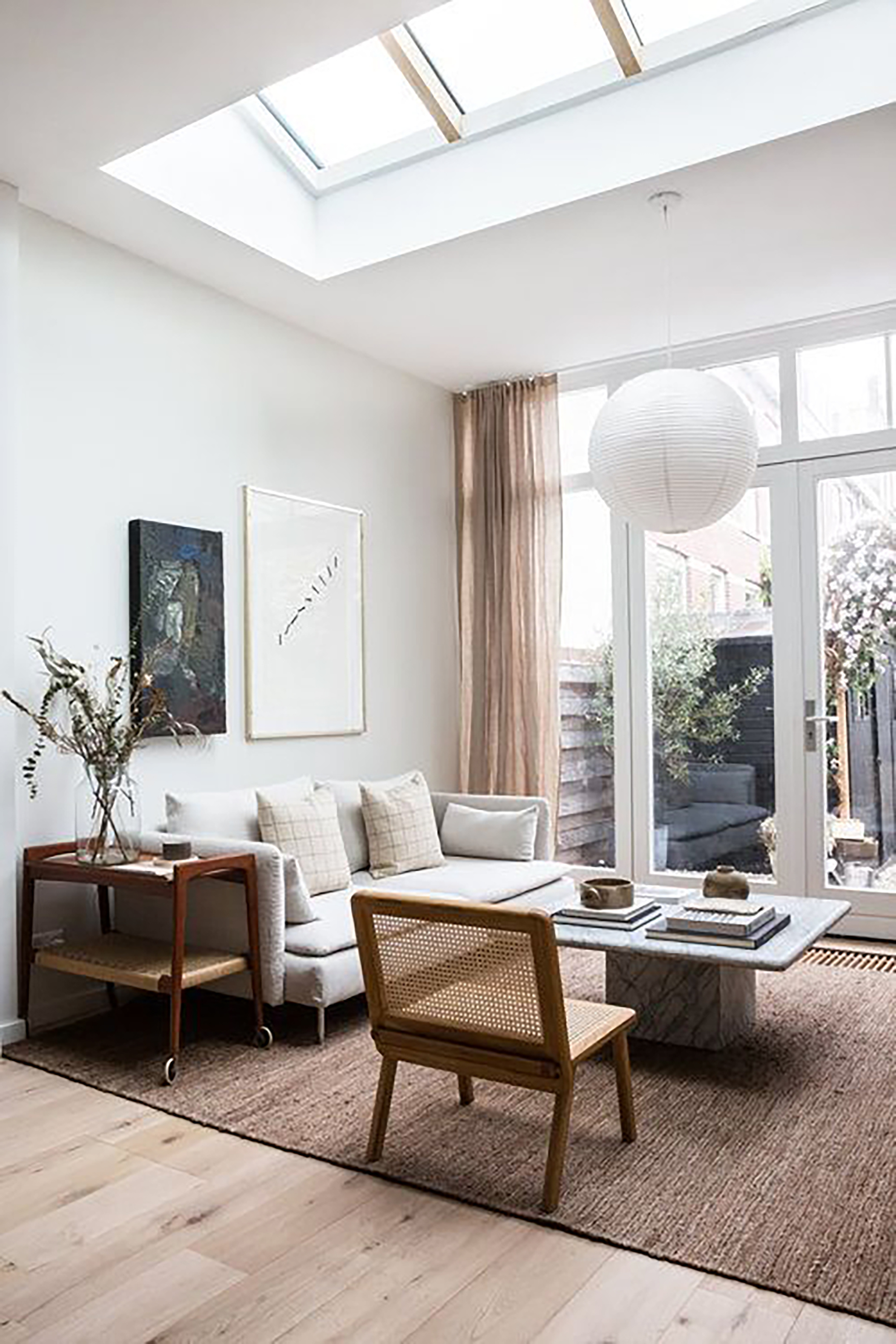 搭配木色較淺的橡木、柚木等家具家飾,帶出輕柔寧靜的大地色感 ; 與深色木質形成完美平衡,為空間注入靜謐氛圍,同時保持清新質感,創造和諧又一致性的視覺效果。
