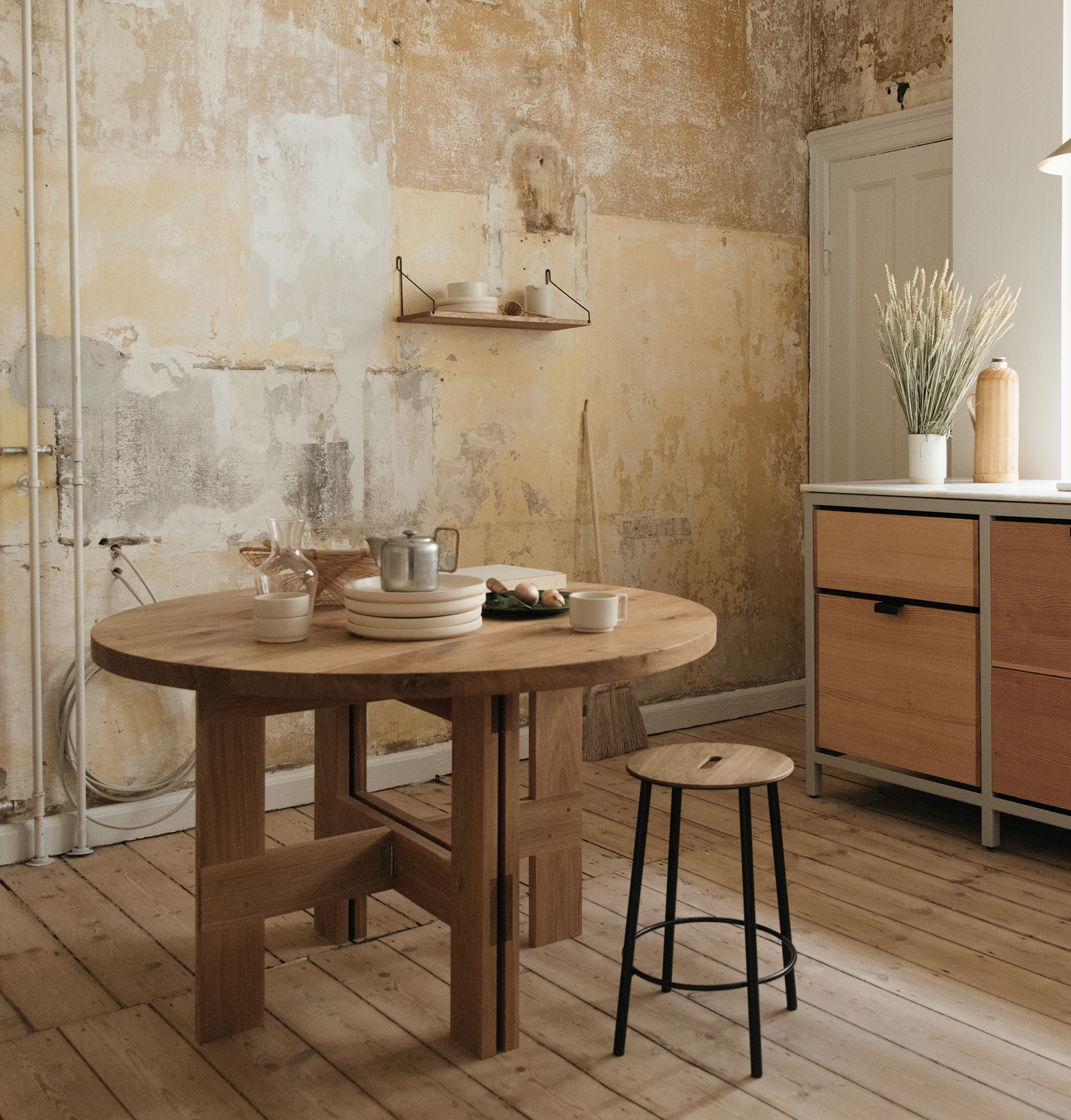 以精瘦的金屬鐵腳、簡潔俐落的極簡造型,Frama 最標誌性的商品 - Adam「亞當」椅凳系列,帶著略微粗獷工業風,簡單卻留下令人深刻的印象。