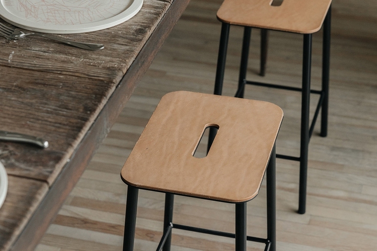 椅面有木材與皮革兩種選擇,木材擁有與身俱來的自然氣息,與金屬的質感形成和諧平衡;皮革更是金屬的最佳搭檔,隨著使用時間增長,皮革擁有獨特的歲月質感,用得越久、越有味道。