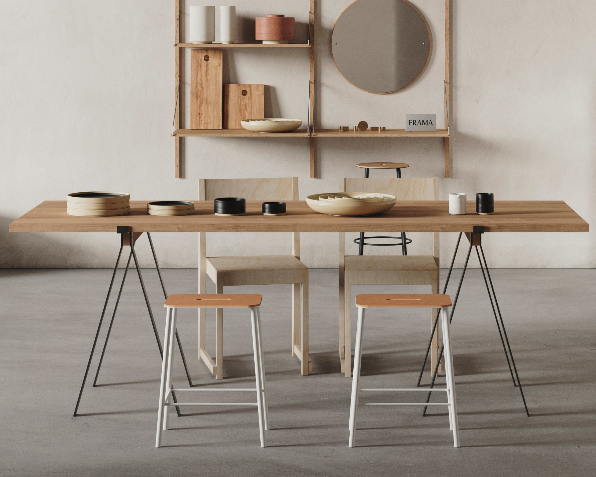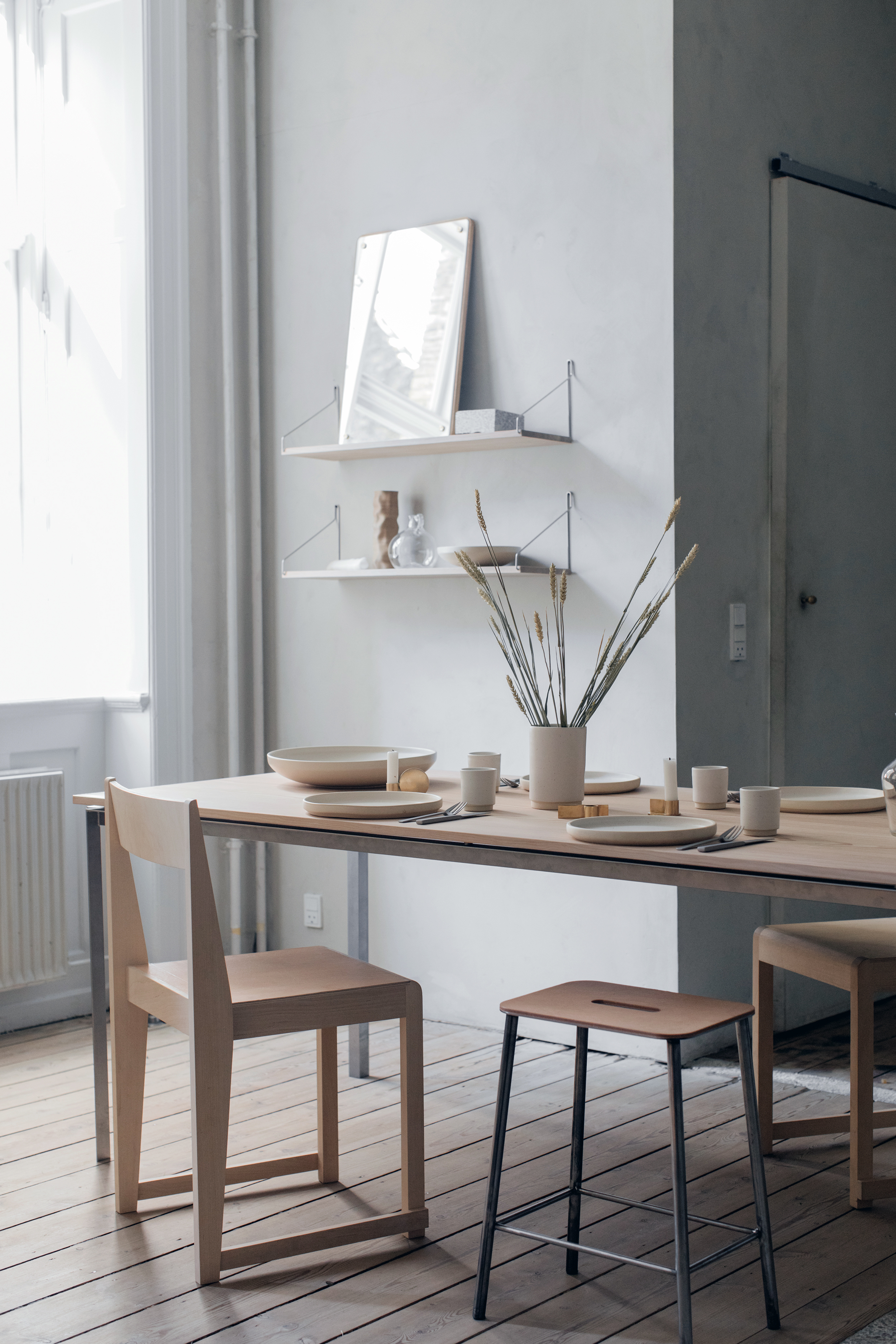 以精瘦的金屬鐵腳、簡潔俐落的極簡造型,Frama 最標誌性的商品 - Adam「亞當」椅凳系列,帶著略微粗獷工業風,簡單卻留下令人深刻的印象。
