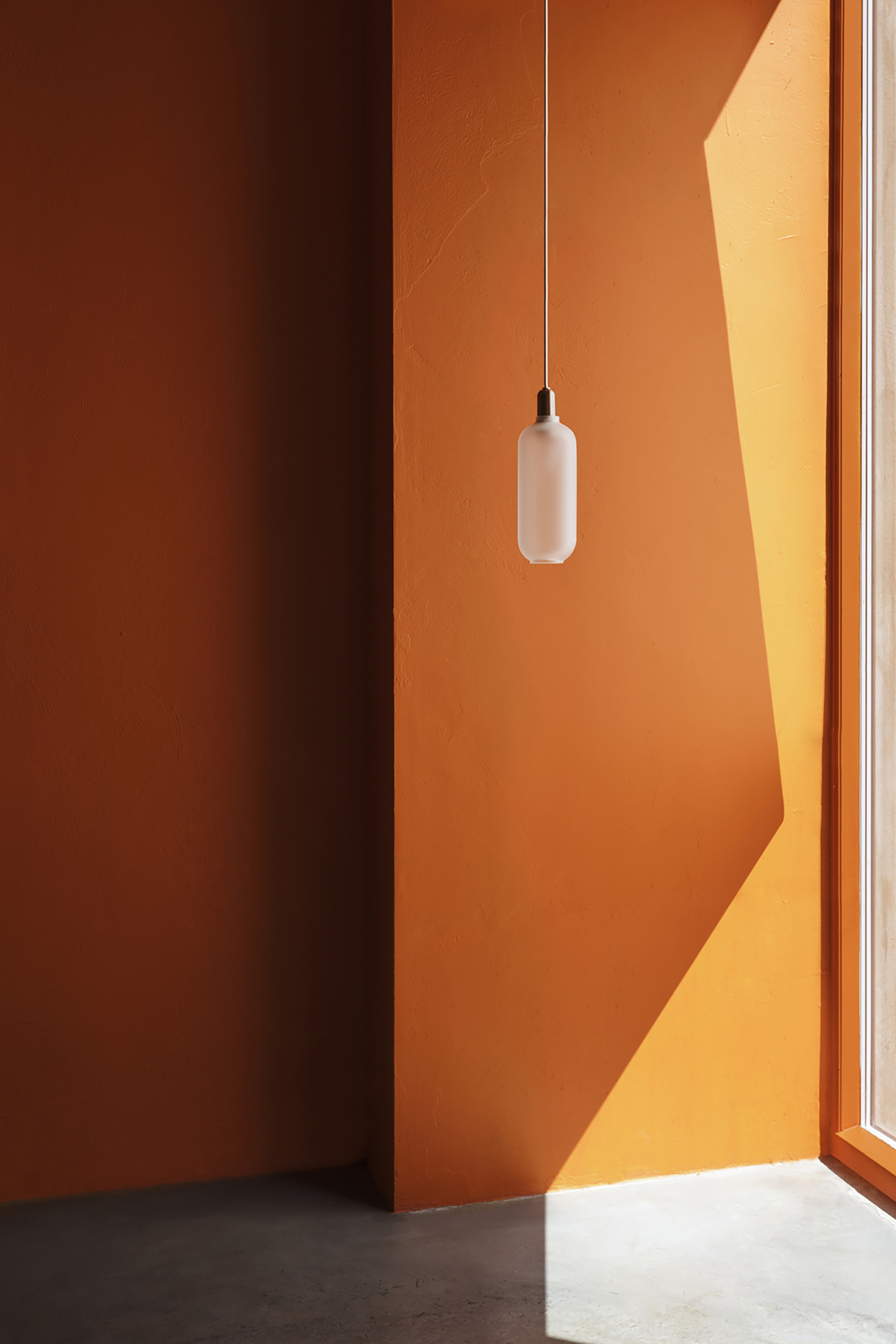丹麥設計師 Simon Legald 設計的 Amp 燈飾系列,包括一個桌燈以及兩盞吊燈。高質感的玻璃燈罩與大理石燈頭,結合出一種既輕巧卻又沉甸甸的視覺反差,讓 Amp 兼具懷舊與當代的韻味。