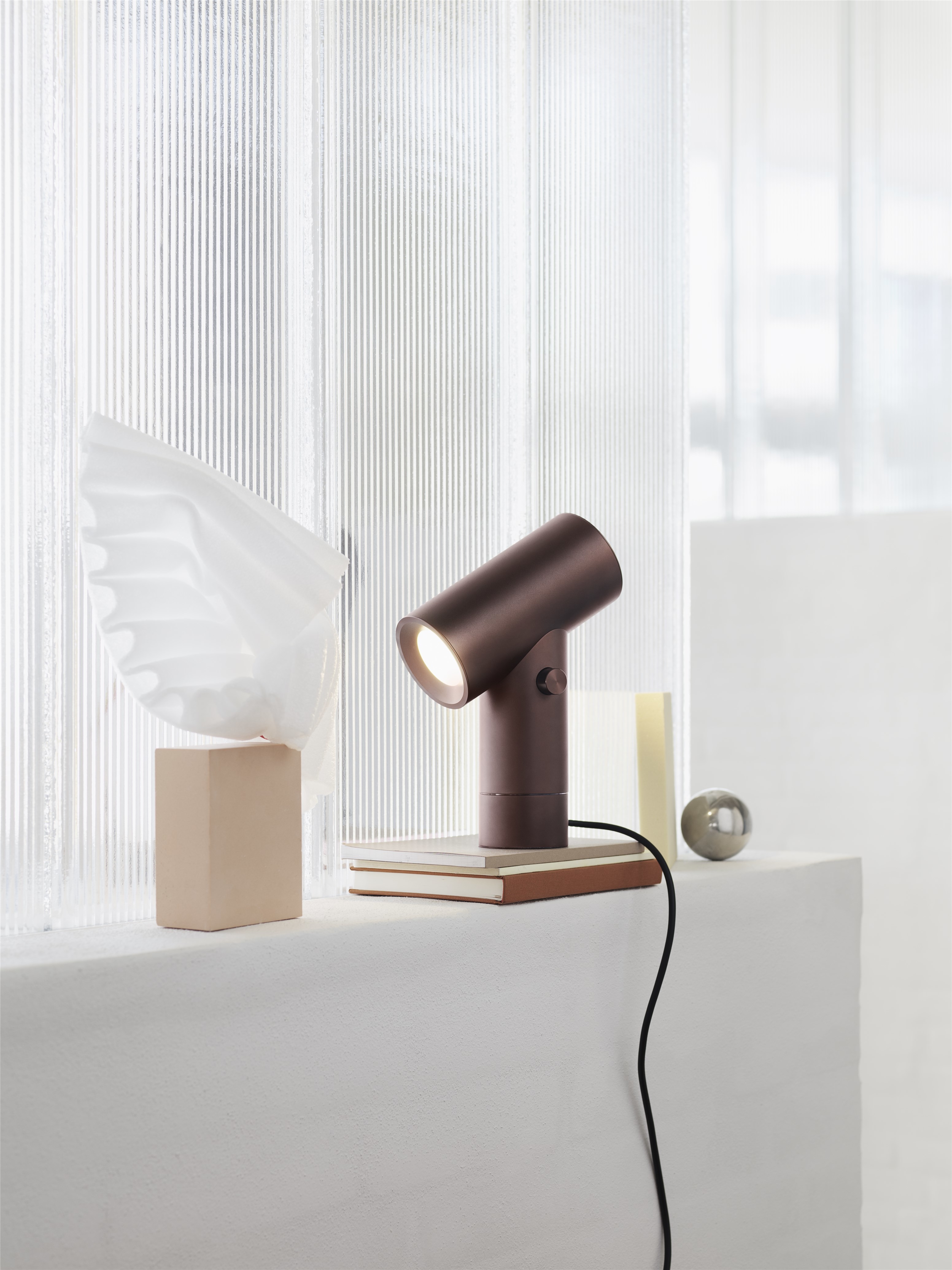 利用光譜的概念,「光束」桌燈 Beam Lamp 前後有兩個燈頭,以調光旋鈕來控制前後燈頭的亮度,在漸明漸暗的頻譜間,找到最適合的光源。同時,可以左右旋轉的燈座,讓光源在運用上又更加靈活。輕巧可手持的「光束」,也讓您隨時可以移動位置,在任何需要光源的時分,營造最引人入勝的空間氛圍。
