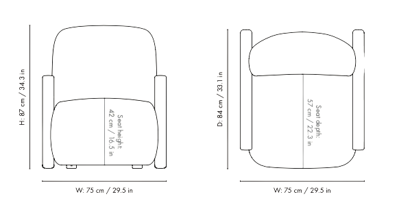 有著美麗外型的 Buur「布爾」休閒椅,配有弧形扶手的流暢結構,為空間注入自然迷人的流動美感,而深色橡木更襯托出優雅內斂的時髦質感。選用高級泡棉的柔軟坐墊,搭配細緻面料,帶來獨一無二的舒適感受。