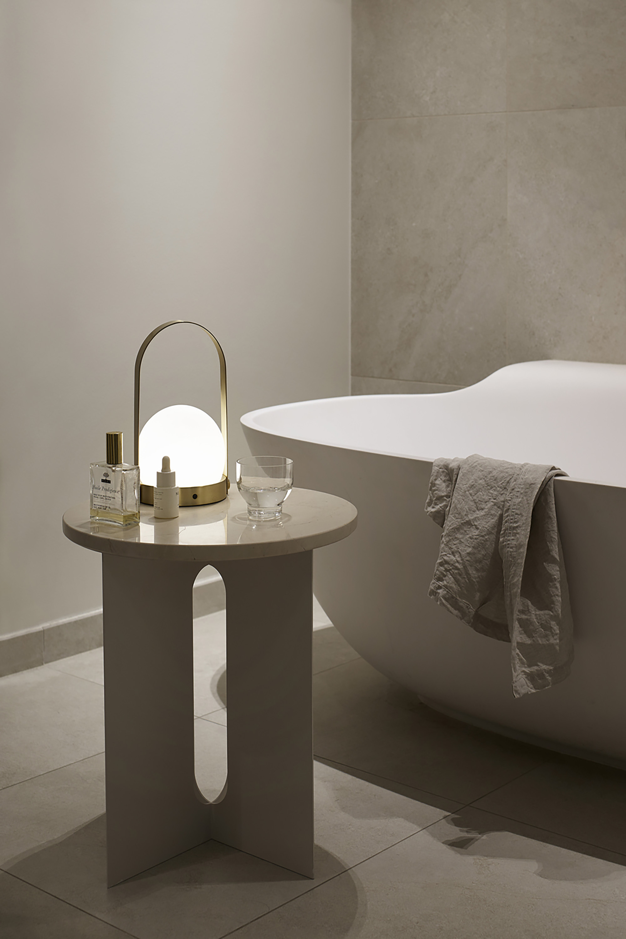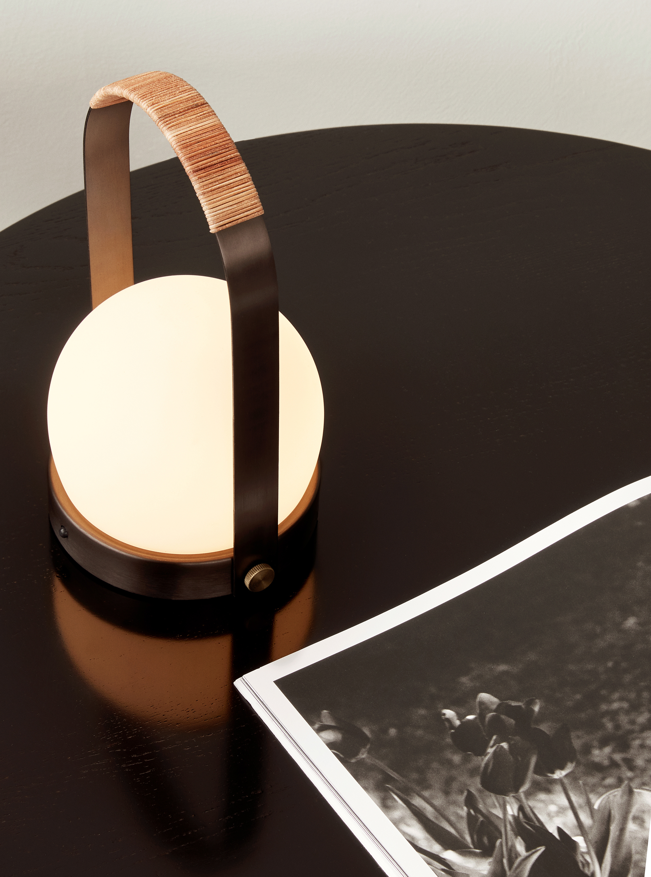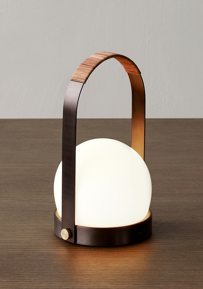 洗鍊、乾淨的線條呈現北歐人的極簡美感,但在溫暖的暈黃的燈光下,展現無與倫比的優雅美感。手把的部分不僅方便移動,同時也是美感造型之一。可以作為床頭燈、情境燈、或是取代蠟燭光源,營造浪漫氛圍。