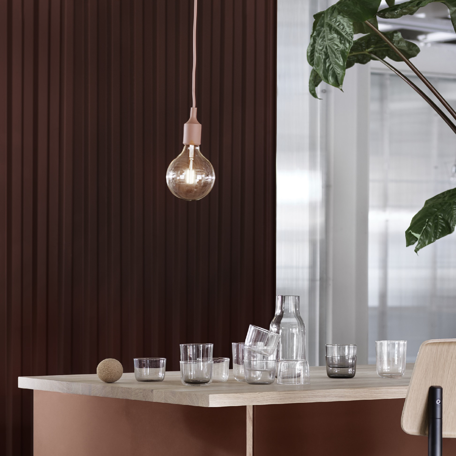 「好動」水杯 Corky Glsses 是「好動」水瓶的好伙伴,輕巧圓潤的造型,低調又清爽,讓您不管是日常生活或在特別場合都能派上用場。除經典低水杯,Muuto 更發表了高水杯組與煙燻色版本,不同組合的「好動」,各有不同的迷人韻味。
