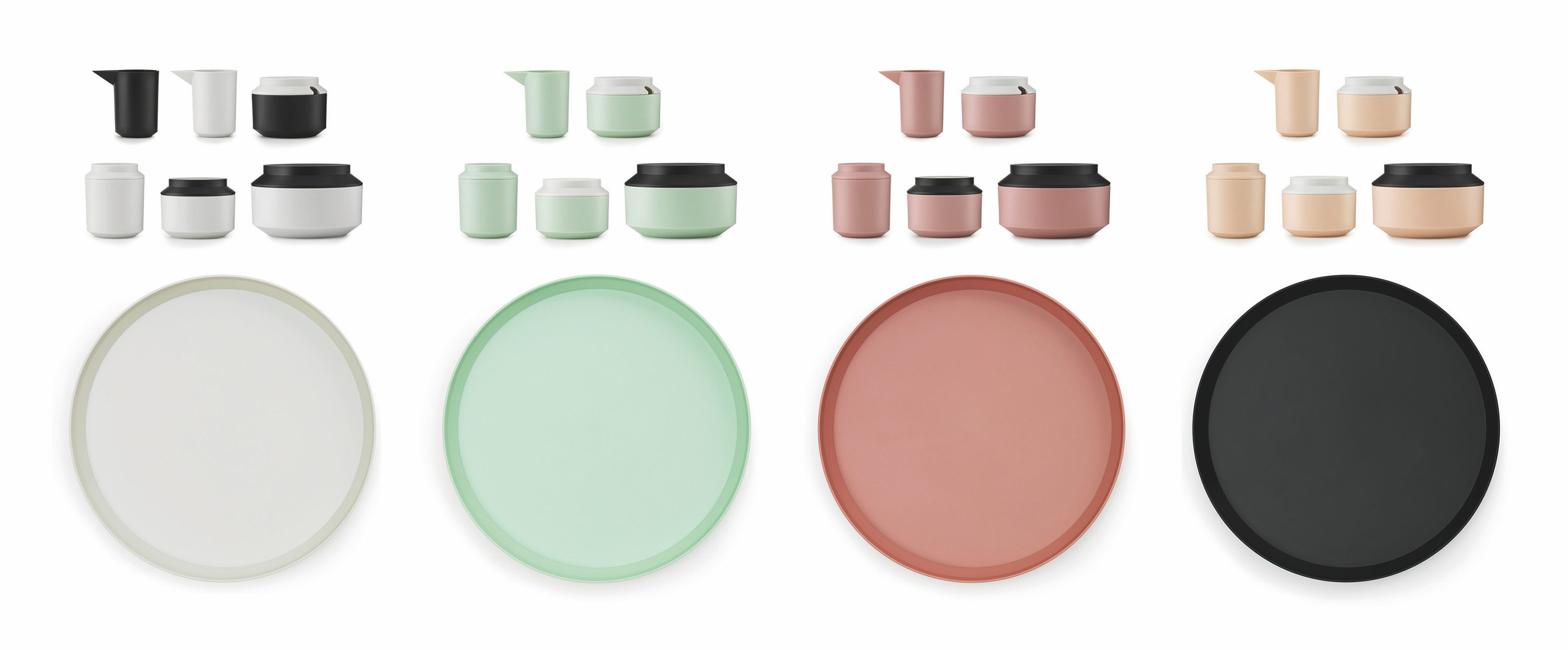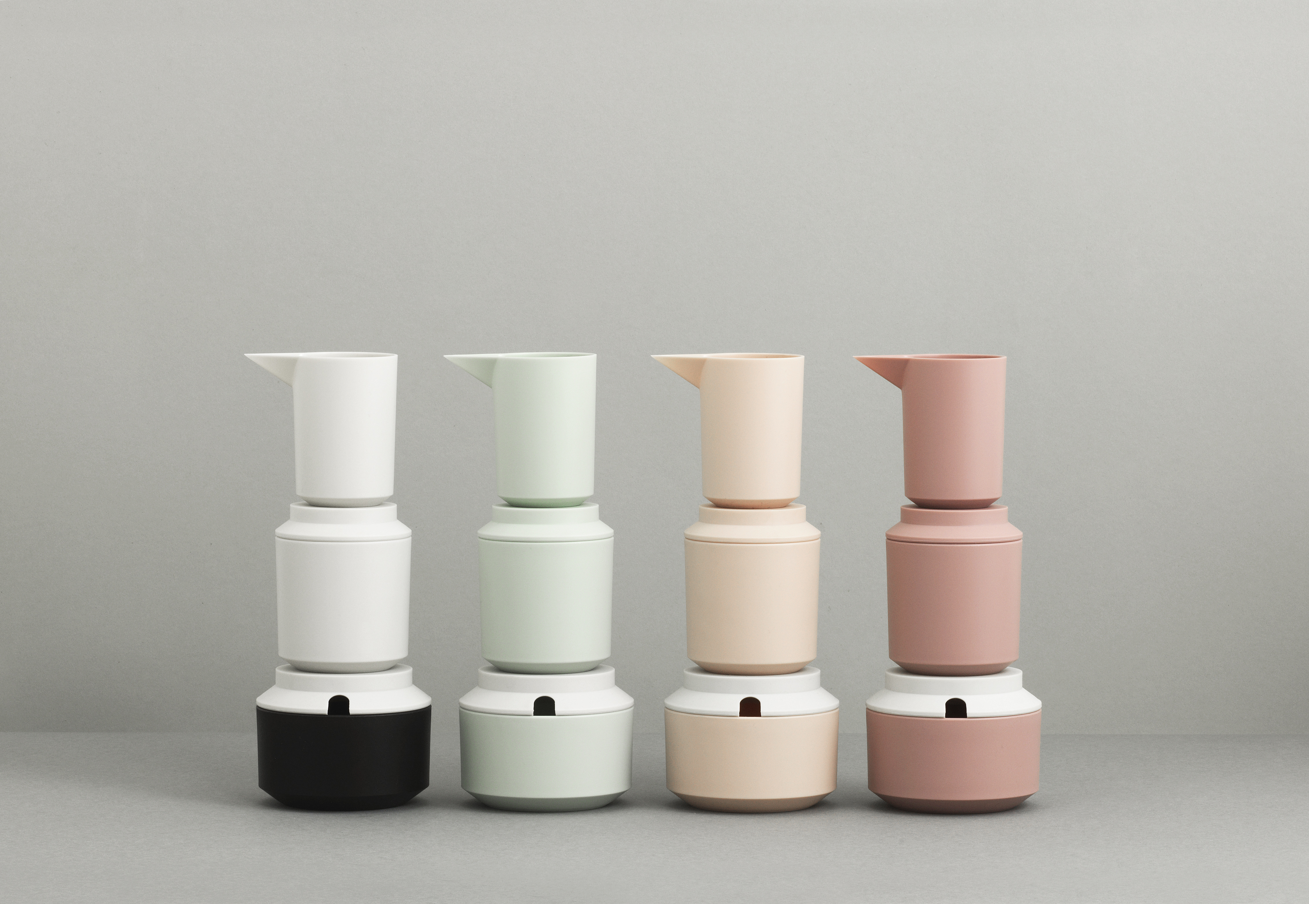 保有一貫簡約、俐落的線條,陽剛的風格配上粉嫩的色系,使「幾何」系列 Geo Series 成為中性又帶有北歐活潑色彩的茶具組。 去掉不必要的裝飾反而凸顯茶具本身的美感,外部使用霧面材質、內部則是光澤處理,成為有趣的對比。