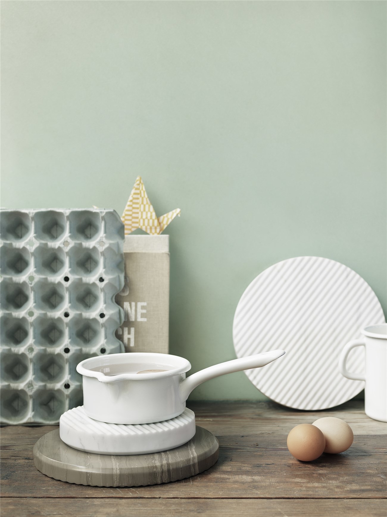 威設計師 Hallgeir Homstvedt 將美感延伸至廚房中不起眼的配角 ─ 隔熱墊,設計出美麗與實用兼具的 Groove「溝引」隔熱墊,使它成為餐桌廚房的氣質擺飾。筆直的線條與石材的自由紋路形成有趣的幾何對比,而且在光影的作用下,「溝引」隔熱墊更成為層次豐富的美麗展示品。