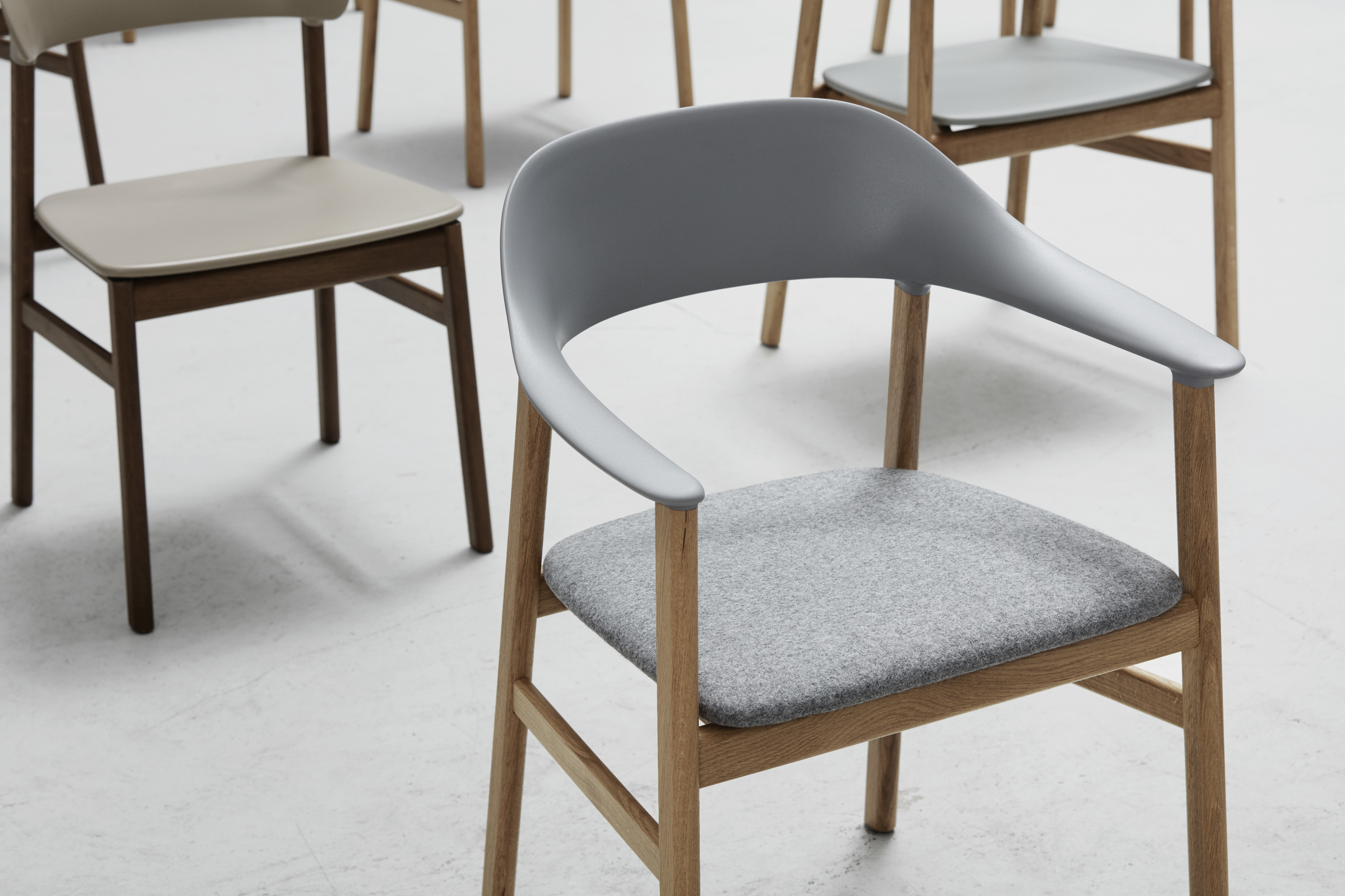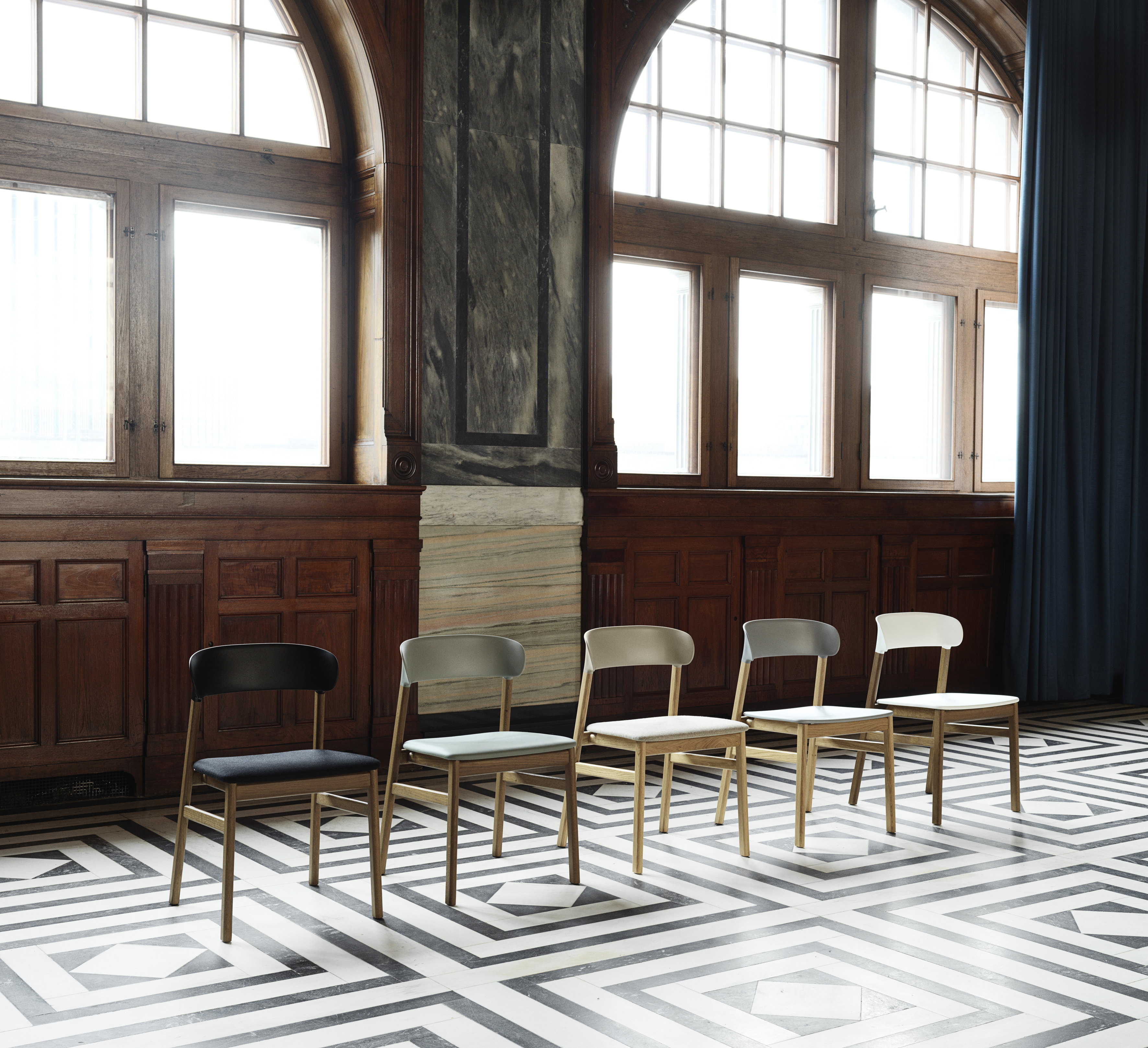 由丹麥設計師 Simon Legald 所設計,Herit「經典」單椅靈感汲取自丹麥經典單椅 The Chair,滑順的椅背扶手線條,在極簡的線條中帶出穩重氣勢。優異的製作工藝,Herit 結合精緻的義大利塑料注模技術,將泡沫塑料填入椅背中,使其可以做出極緻的厚薄變化,同時結構堅固。
