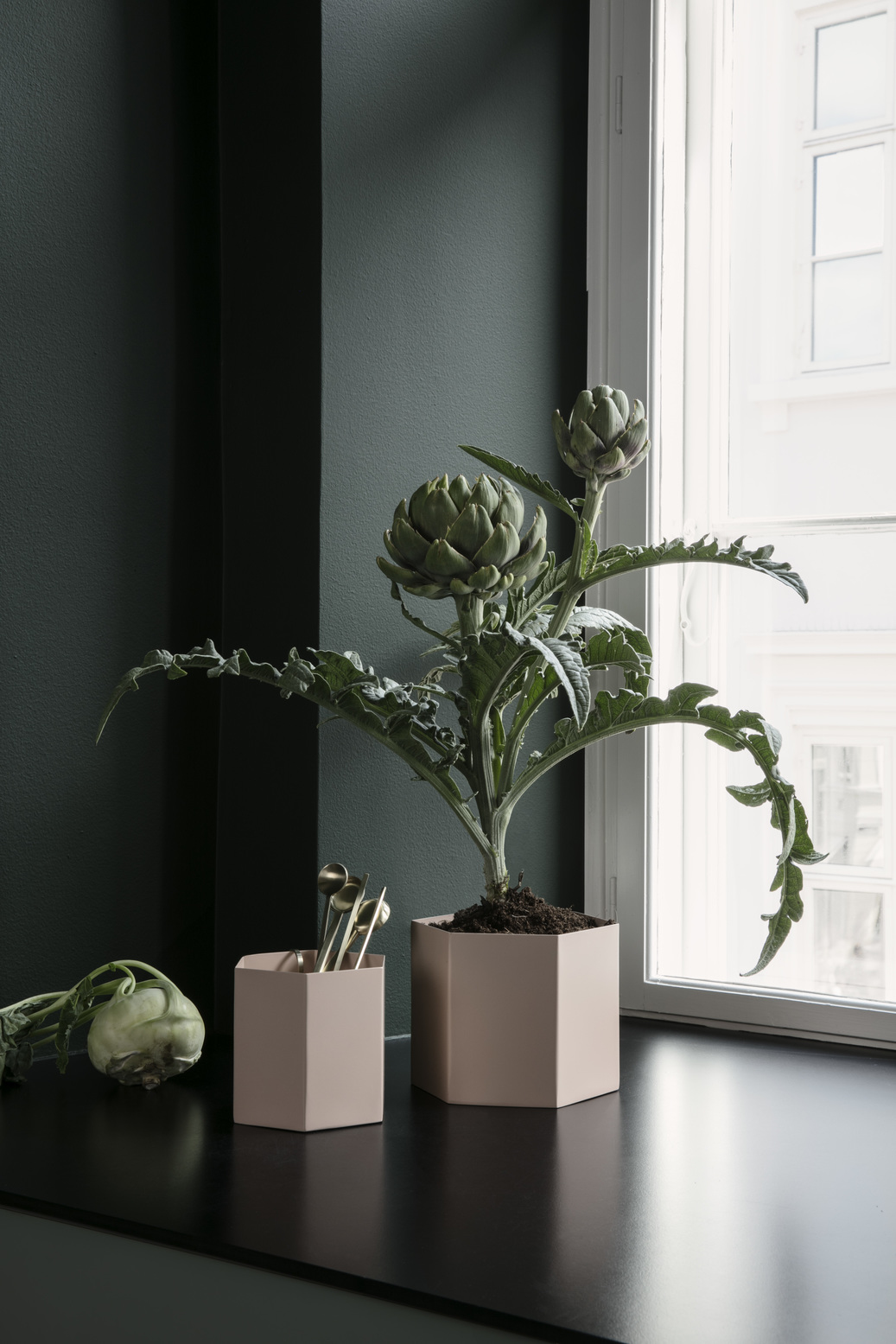 廣受歡迎的六角黃銅系列,ferm LIVING 更進一步推出多種顏色的版本,不僅可以拿來擺放您的桌面文具,也可以作為花瓶或盆栽套盆使用,搭配 ferm LIVING 的「植栽架」與「攀附」壁掛花架使用。讓您的居家氛圍不僅盎然綠意,更添低調又清爽的典雅氛圍。