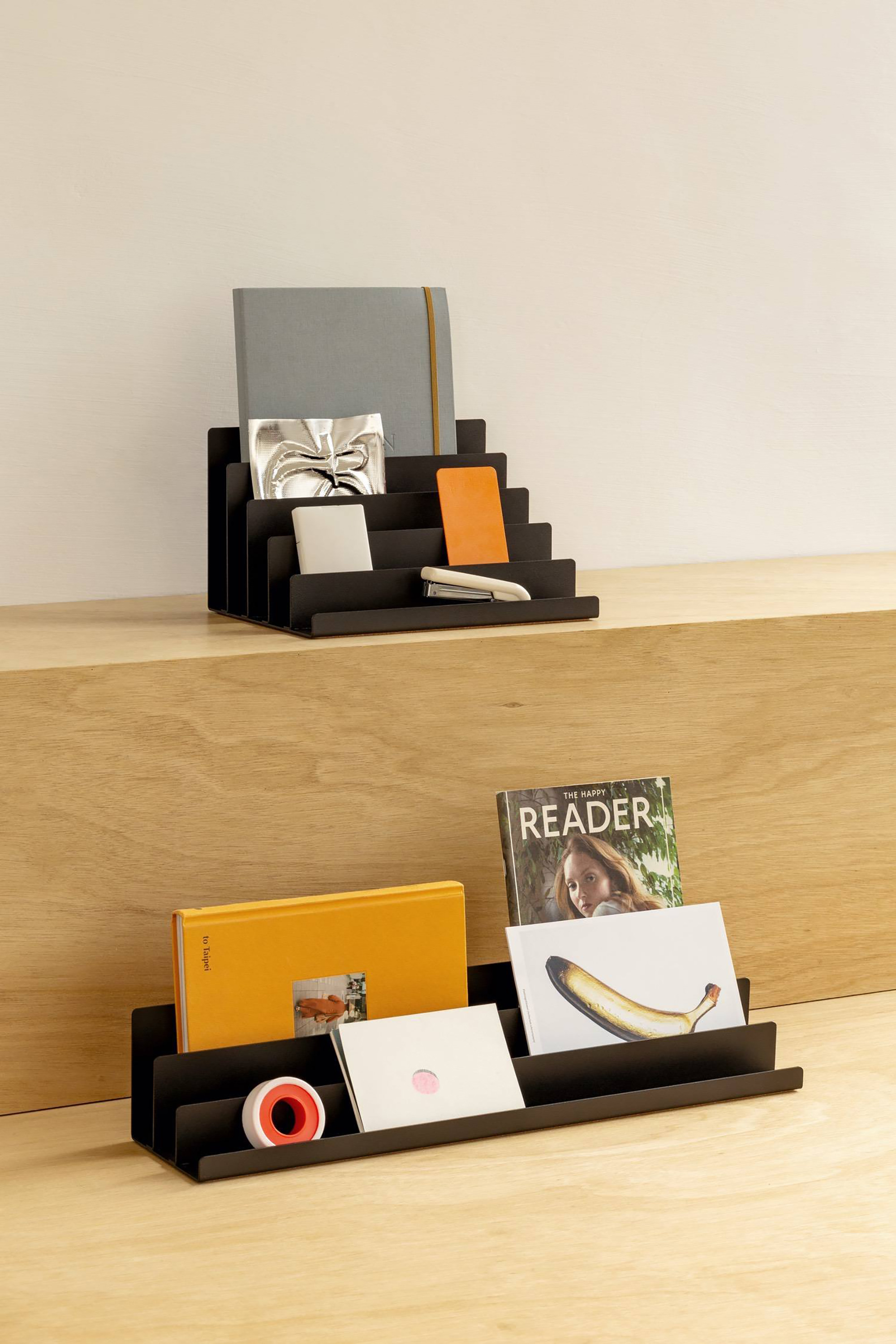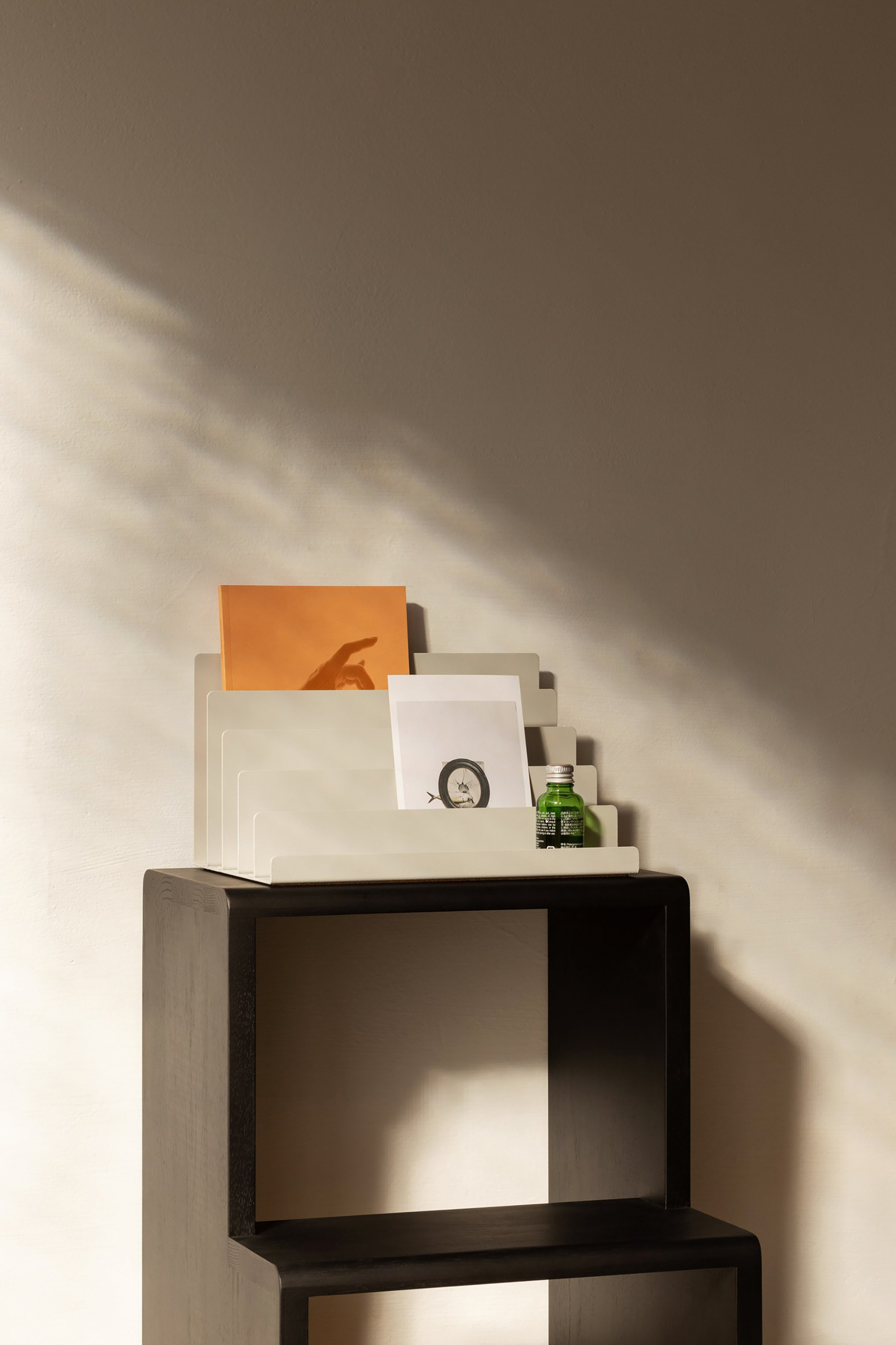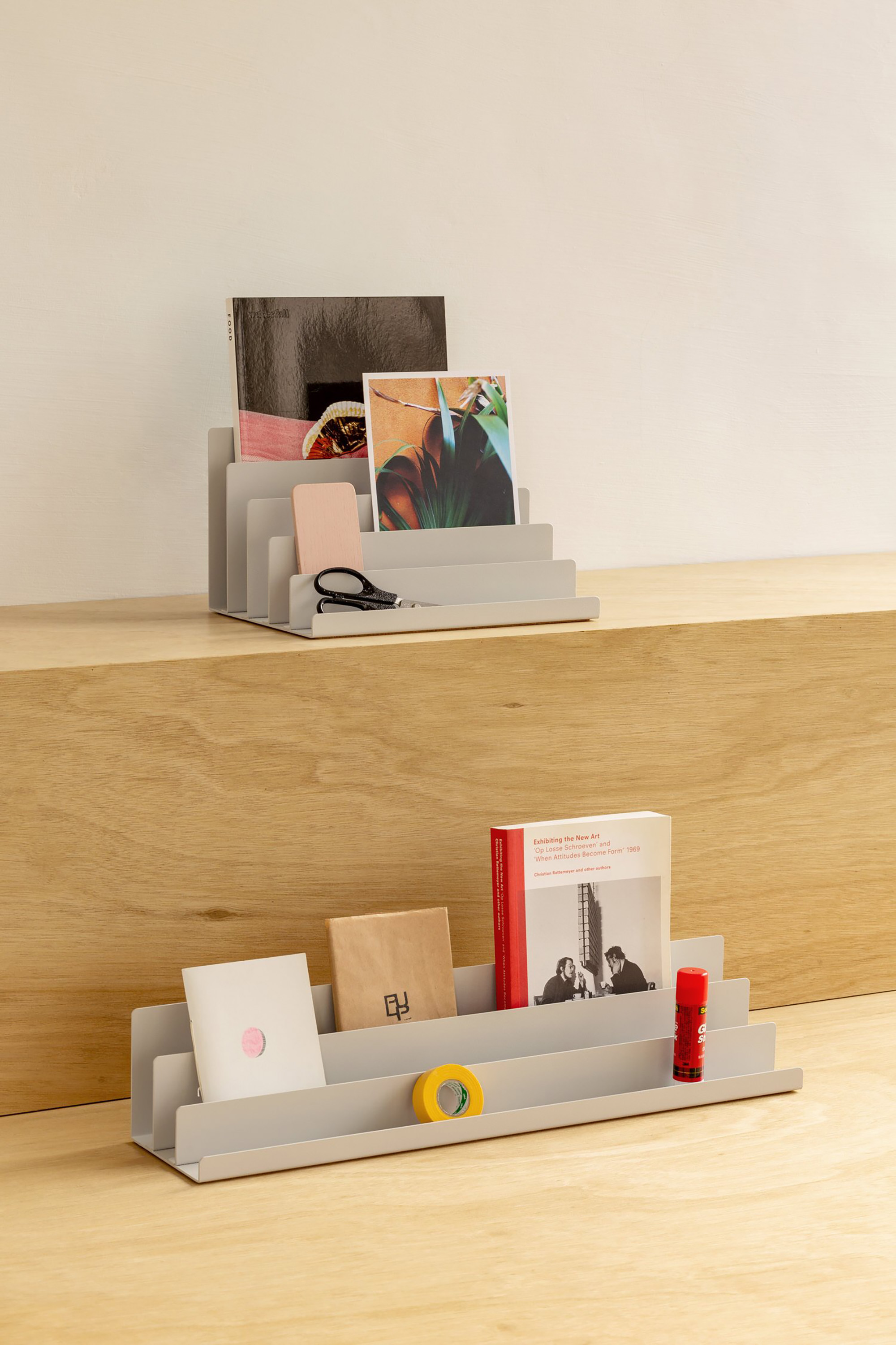 ISO 「伸展台」置物架是一款由美國設計師 Jonah Takagi 所設計的桌上型收納架。由低到高的分層設計與大小適中的隔間距離,非常適合收納紙張、信件、書籍刊物,或是零碎小物件。
