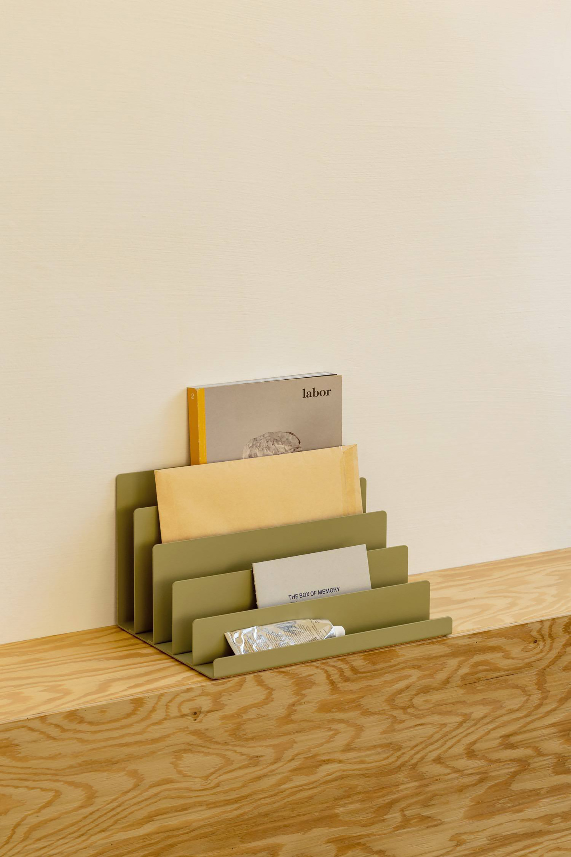 由低到高的分層設計與大小適中的隔間距離,非常適合收納紙張、信件、書籍刊物,或是零碎小物件。整體更以厚實的鋼板材層層焊接構成,並以烤漆塗裝,底部亦有安裝一層防滑軟木墊來適應不同的桌面材質,防刮又耐用!