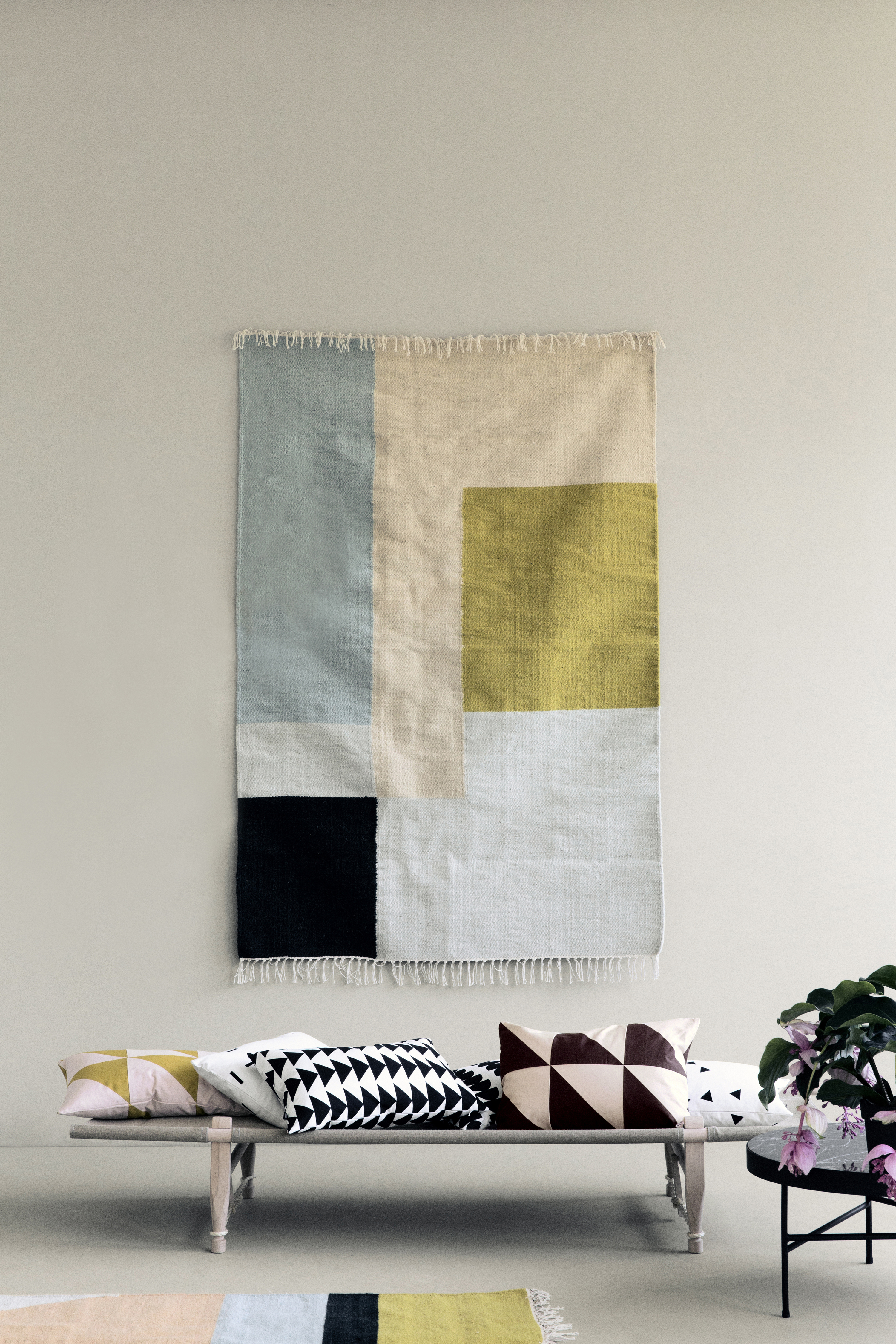 幾何拼接圖案是地毯中最經典的花色,ferm LIVING 幾何方塊羊毛地毯使用一種名為 "Punja" 的古老紡織技術而成,連紗線都以手染方式製作。