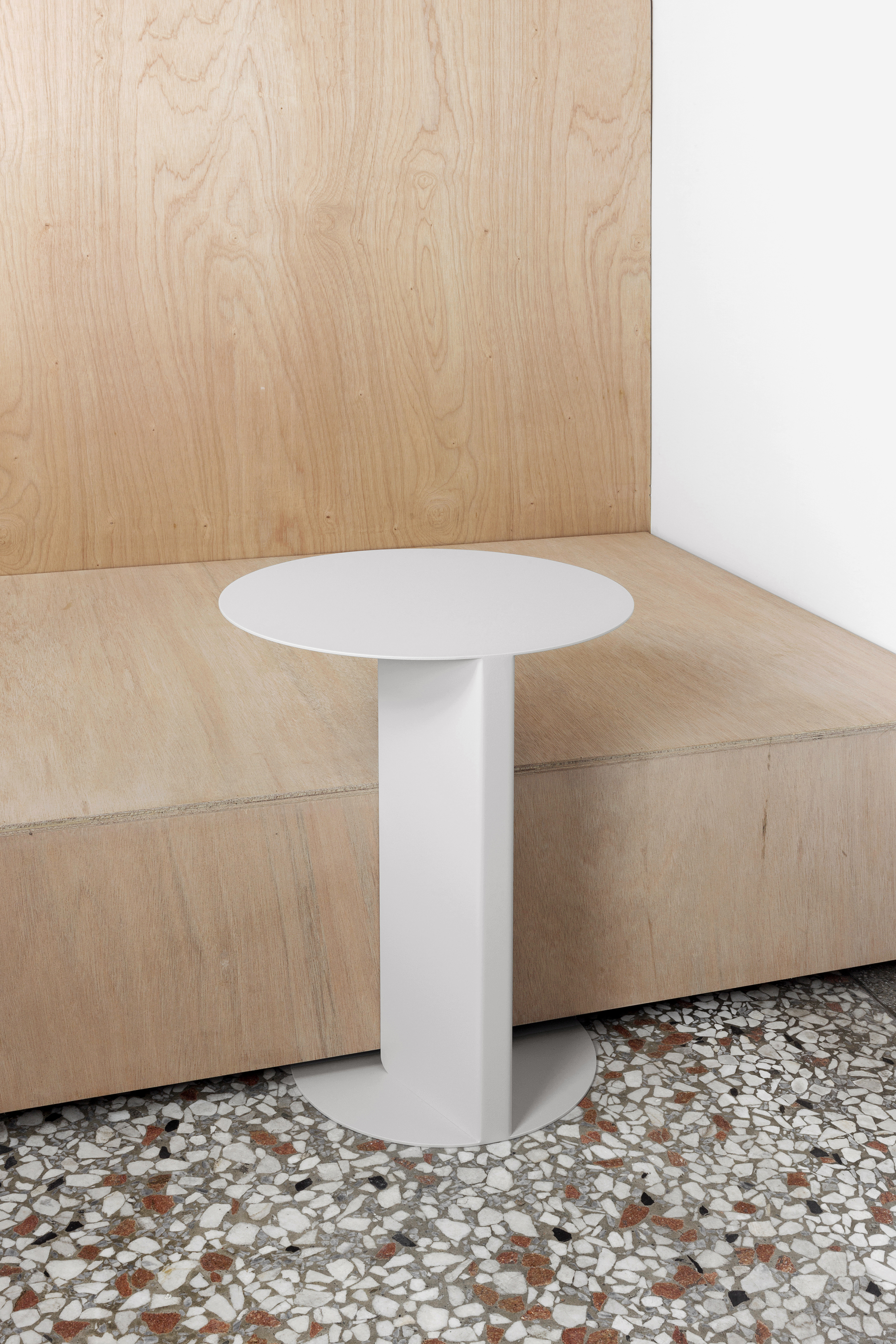 以摺紙的概念,極簡的「卡巴」邊桌 Kipa Side Table是由一整片鋼板折疊而成,呈現靈落的雕塑造型。