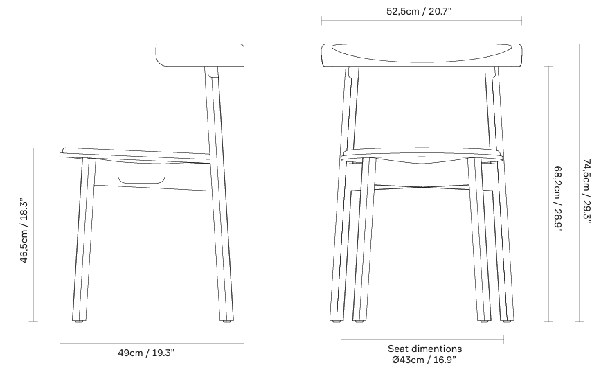 椅座下方採用 X 型結構設計,穩固不搖晃,視覺上卻依然輕盈俐落。坐墊選用來自丹麥 Kvadrat 的 Hallingdal 65 面料,柔軟耐用,為日常多添一份舒適。