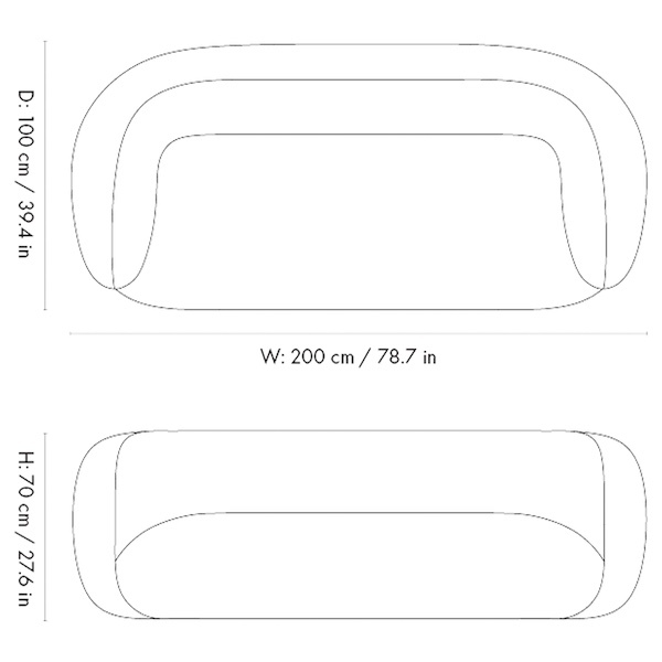靈感來自懶骨頭的隨性線條,幾近兩人份沙發 以輕鬆自在的姿態,帶來柔軟舒適的坐感。全椅身使用泡棉製成,內部填充也採用生產剩料再利用,輕盈又有彈性,坐上去像是被溫柔包覆。