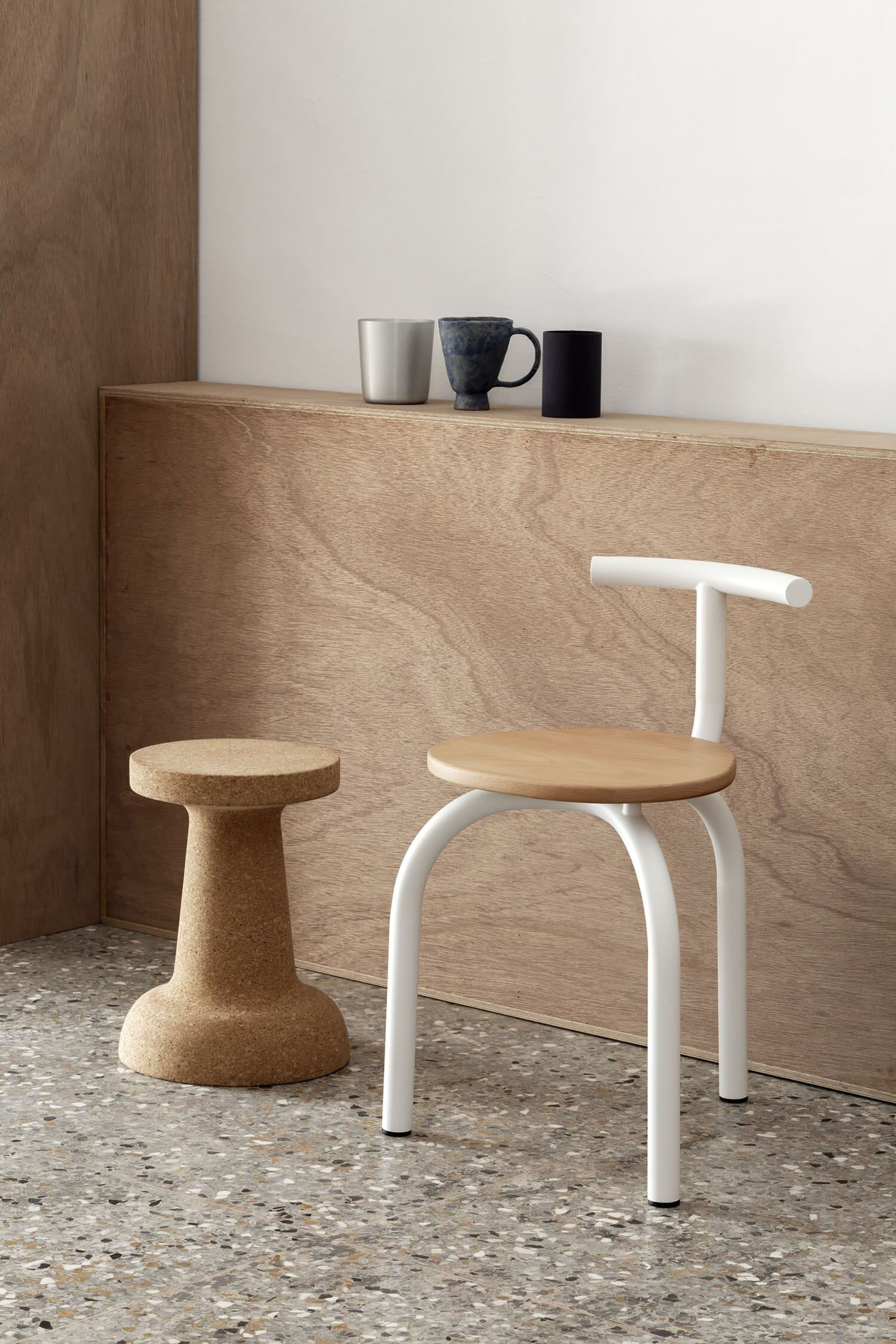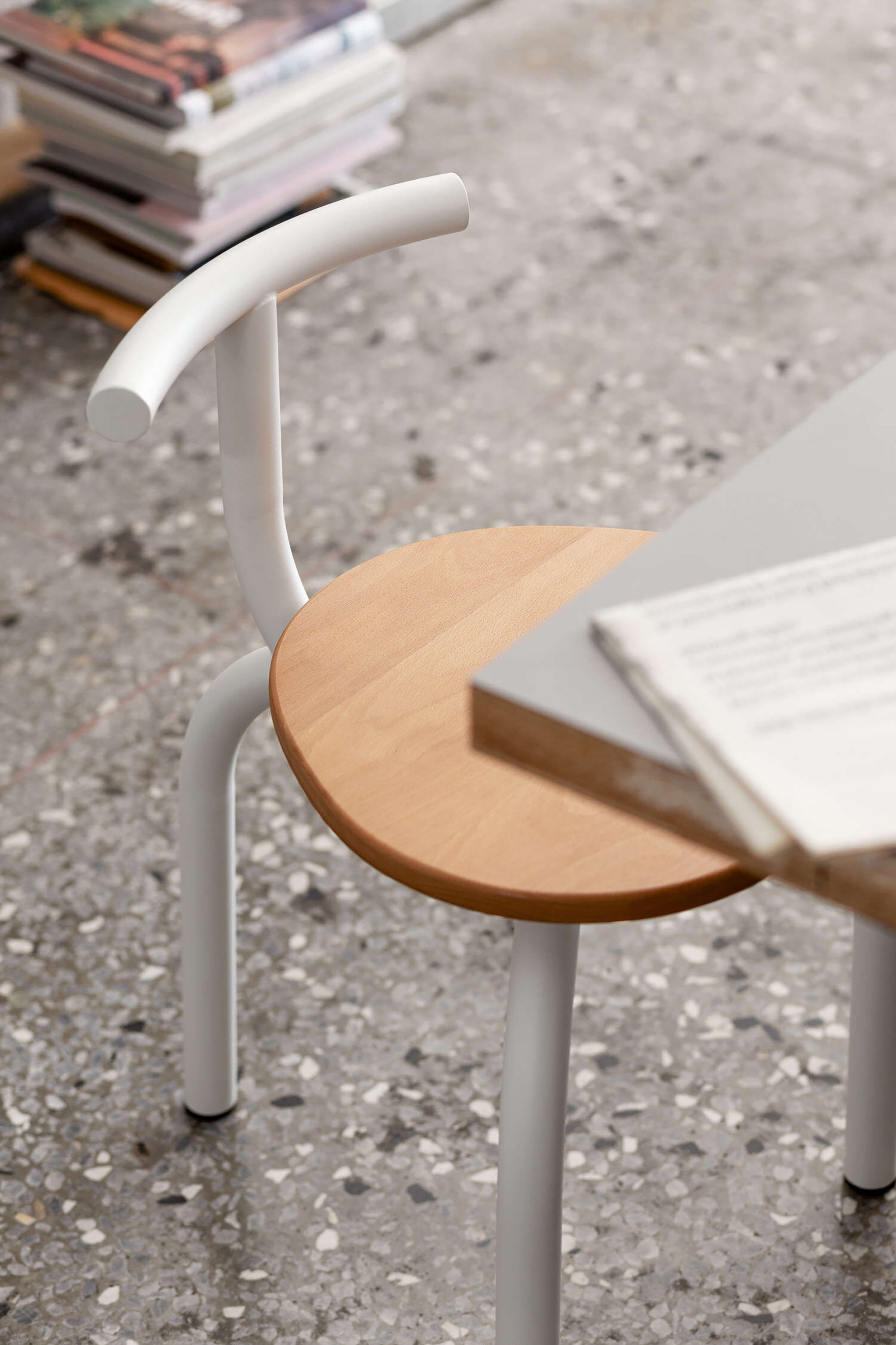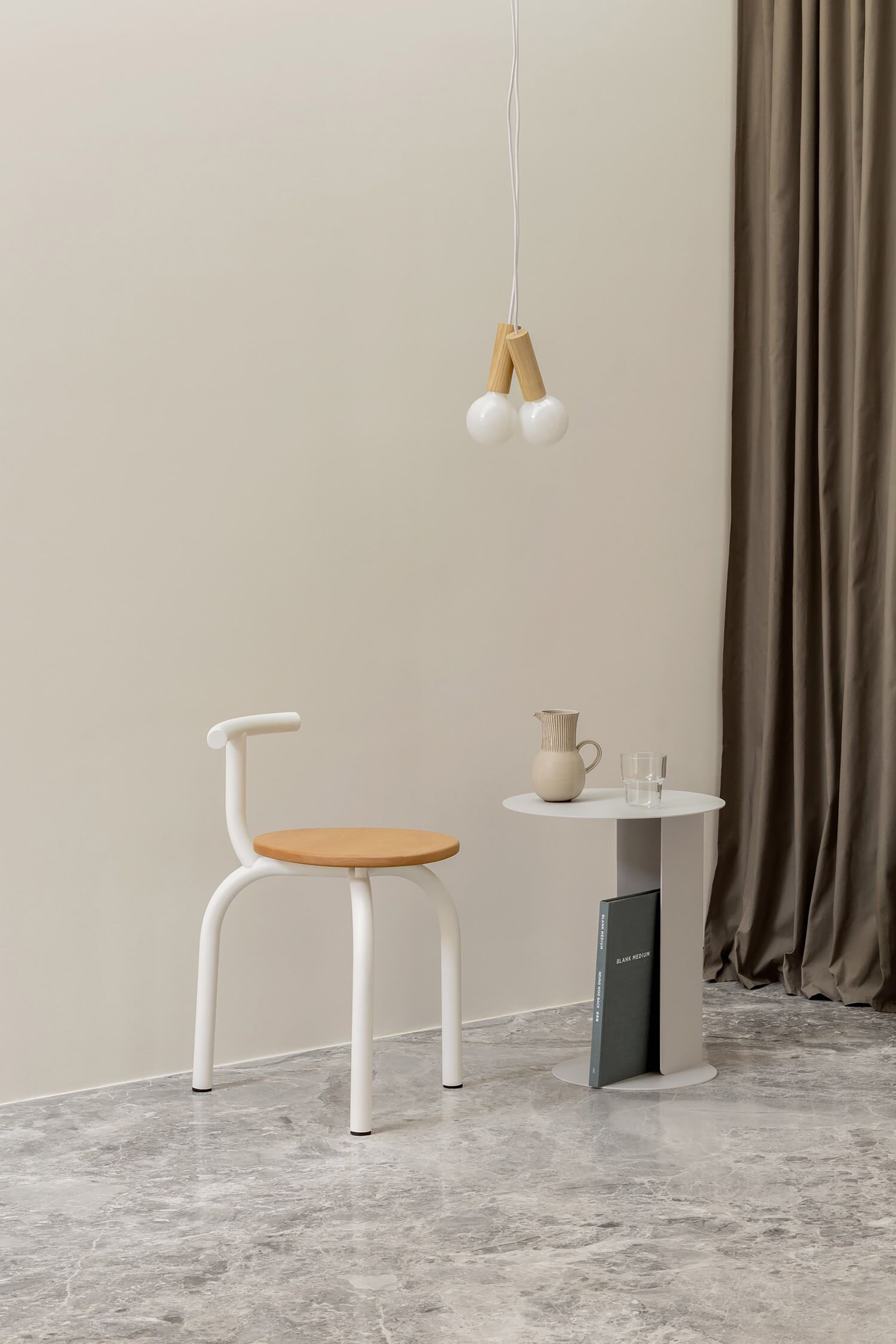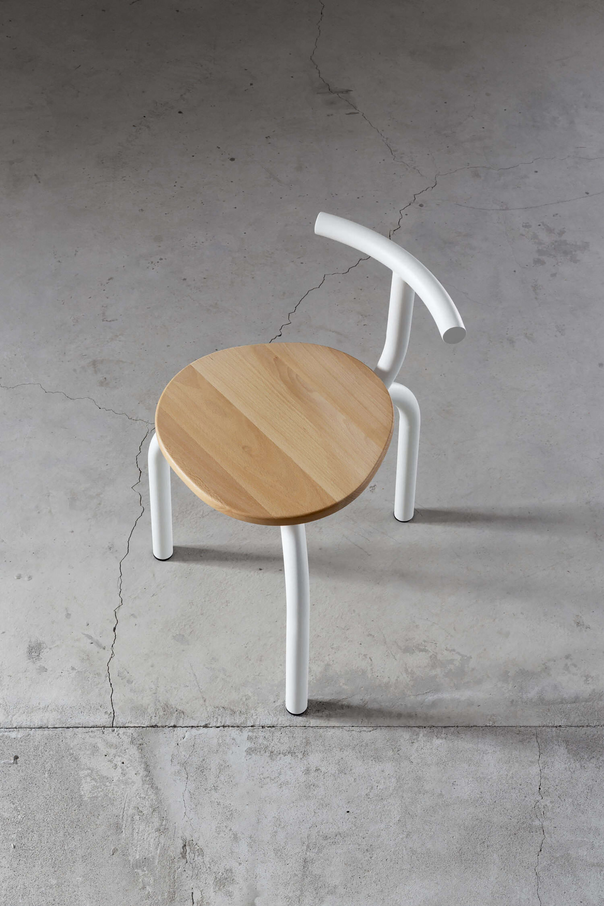 OGLE 奧格單椅以精細的金屬材質,透過彎折、焊接加工技術製作,呈現出獨特的三支椅腳支撐形體。與山毛櫸木材椅坐形成鮮明對比,凸顯原木質地之溫暖,帶來充滿趣味性且印象深刻的創作。