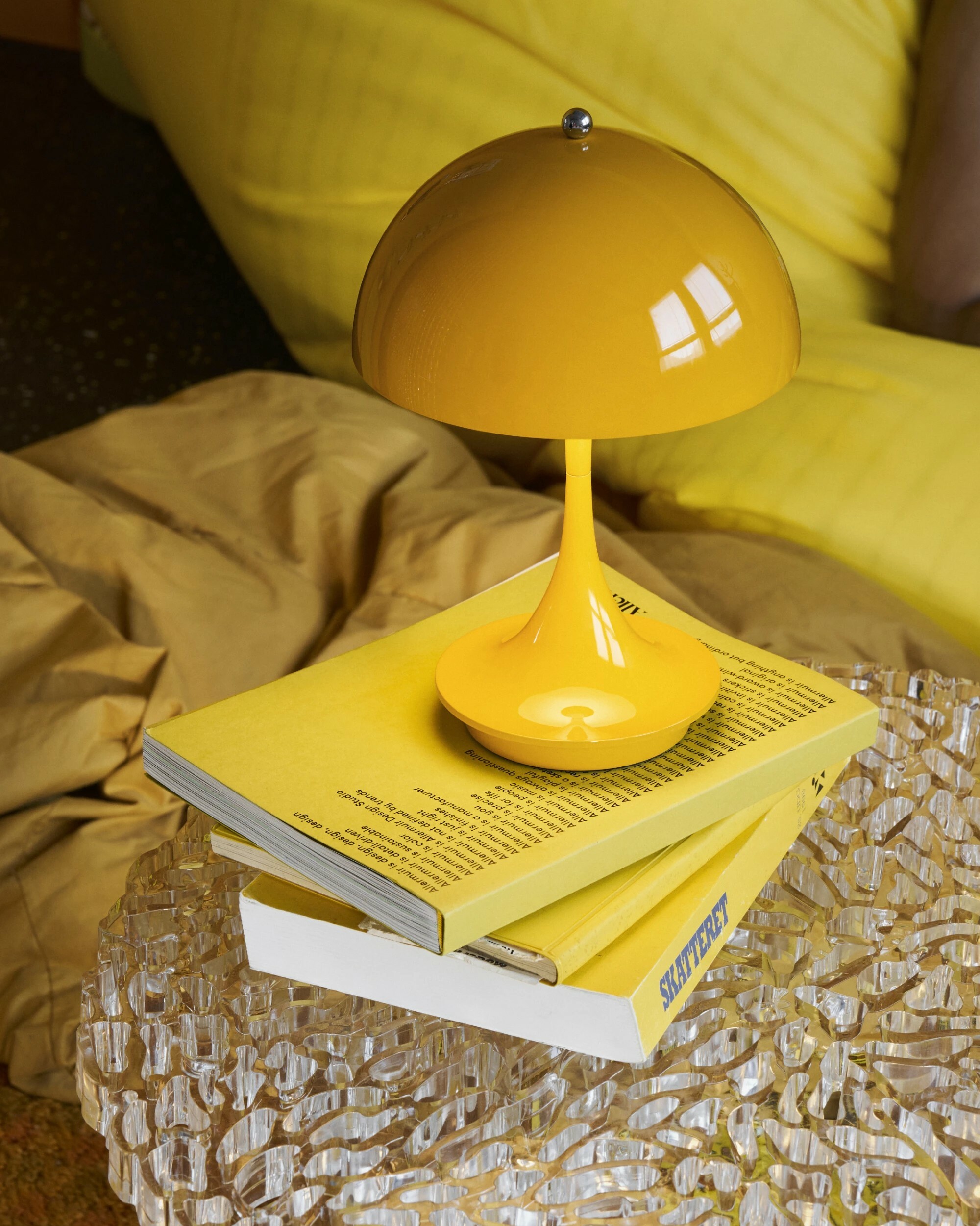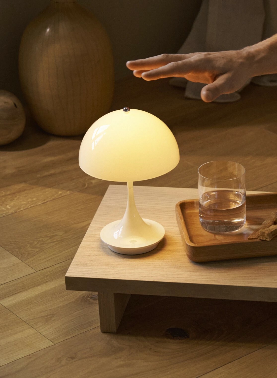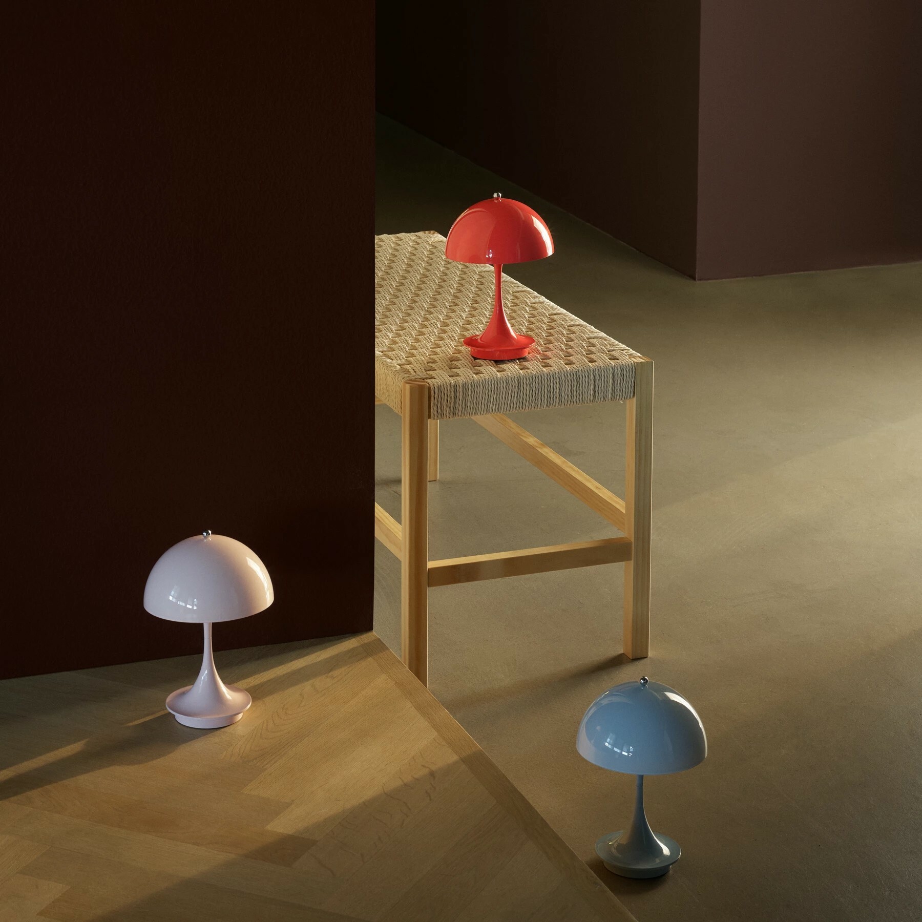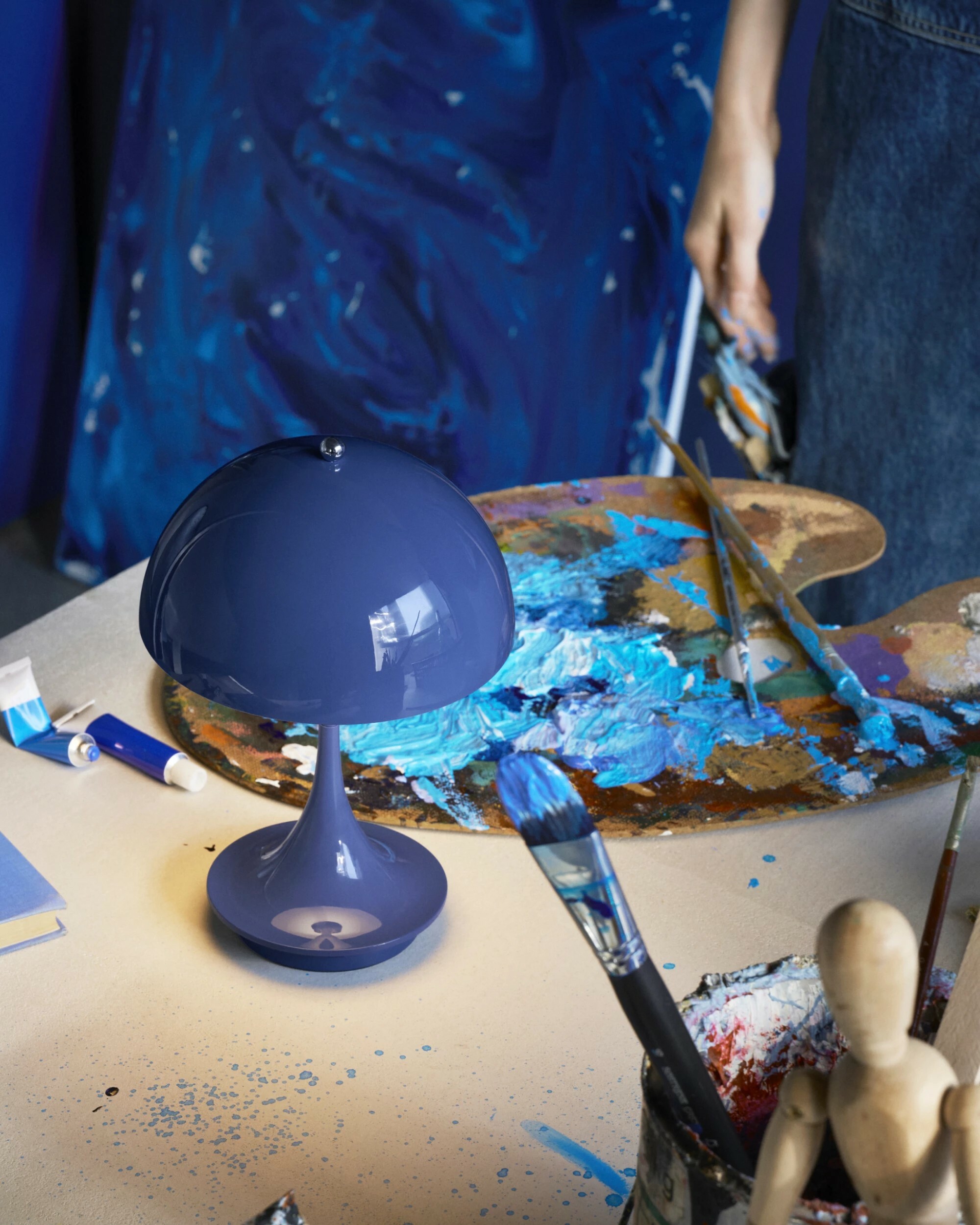 Louis Poulsen 2024 年秋冬推出的 Panthella 160 Portable 無線檯燈 V3 共有 13 種顏色,其中 6 款為新顏色(米色 / 靛藍 / 黃銅色 / 銀鉻色 / 米色燈罩 x 銀鉻色燈座 / 藍灰色 x 銀鉻色燈座)。