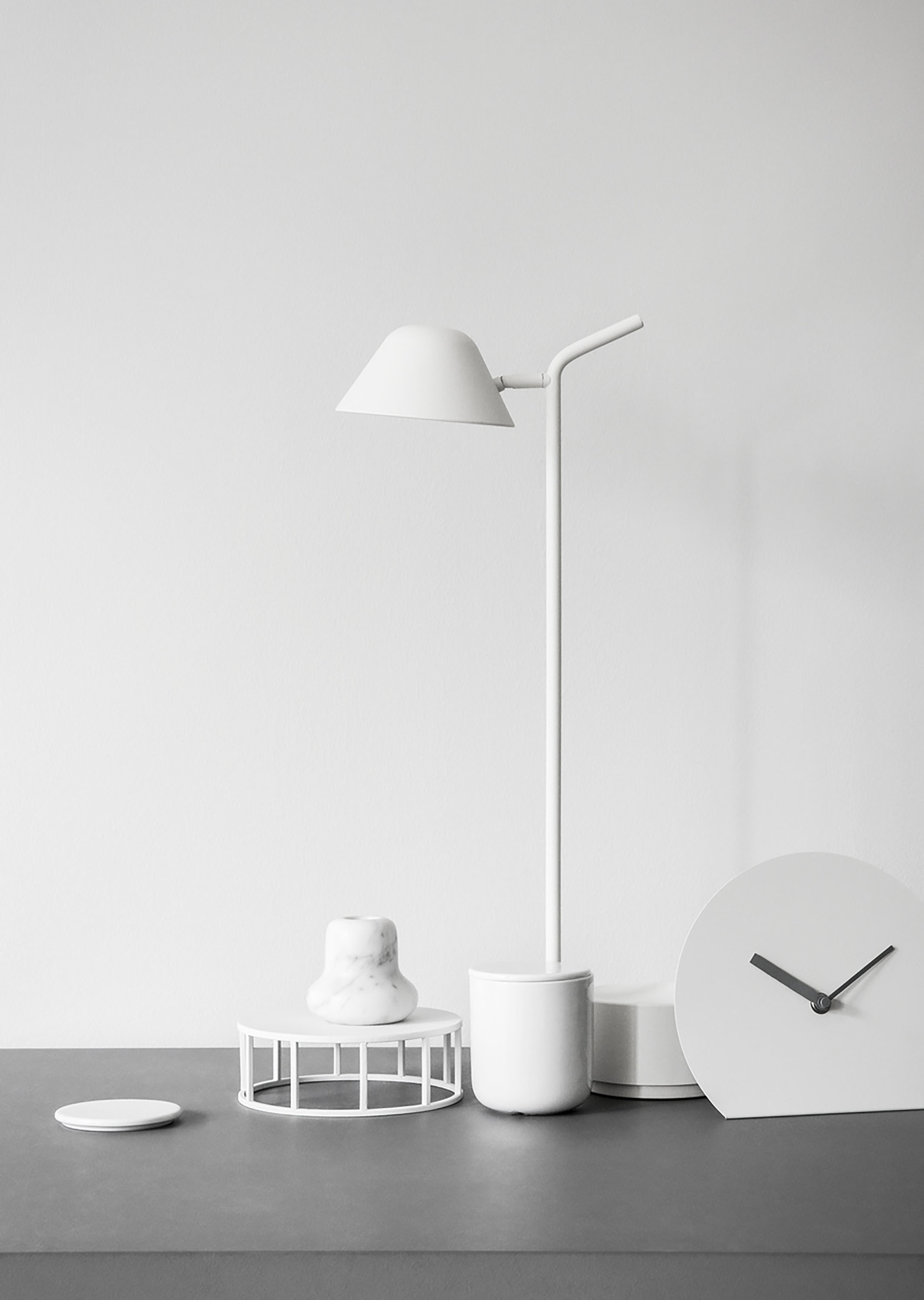 佇立 / 桌燈為立燈系列的縮小版,強調小而巧的外型設計,穩固的底座呈碗狀形,能簡易收納耳環、耳機或其他小物品,搭配細長型的優雅線條感,時尚簡約的輪廓,不論是在辦公場所或是居家空間中,都能完美擔任最佳擺飾,和諧中創造不凡的點綴效果。
