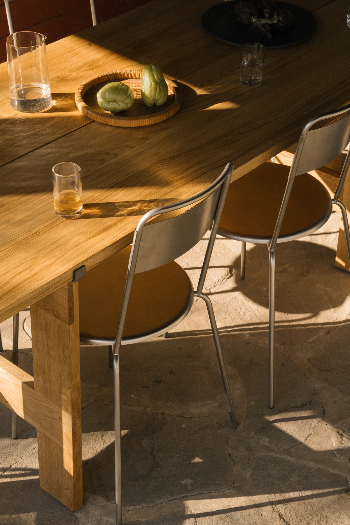 纖細的輪廓中蘊含對舒適性、耐用度與質感的深度思考。無論置於室內或戶外,皆自然融入生活場景。可堆疊、易移動,回應現代空間對靈活性的需求,也延續 FRAMA 一貫對簡約與材質本質的尊重。