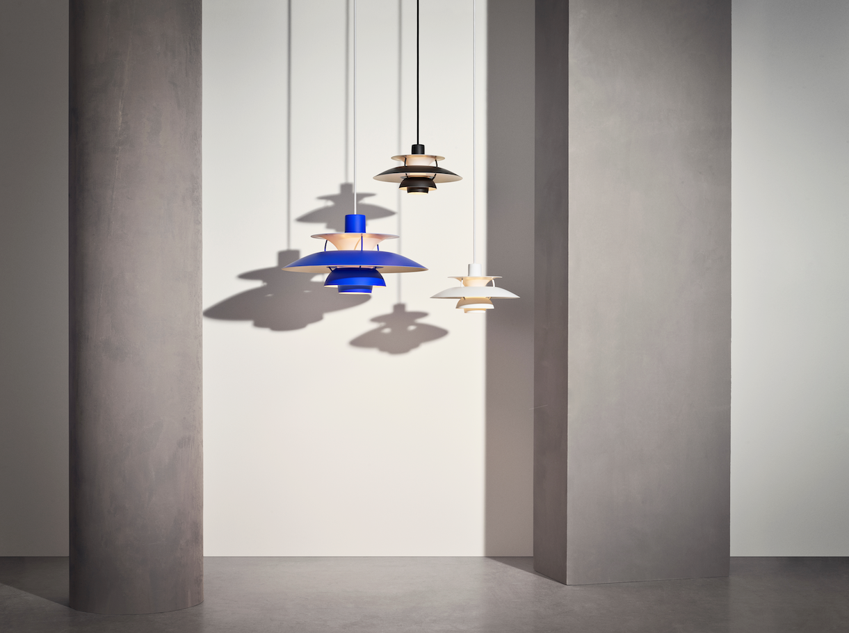 2020 年,PH5 推出單色系列,霧面噴漆的金屬燈罩提供黑、白、藍等三種顏色。單一用色更能呈現出眾的設計。