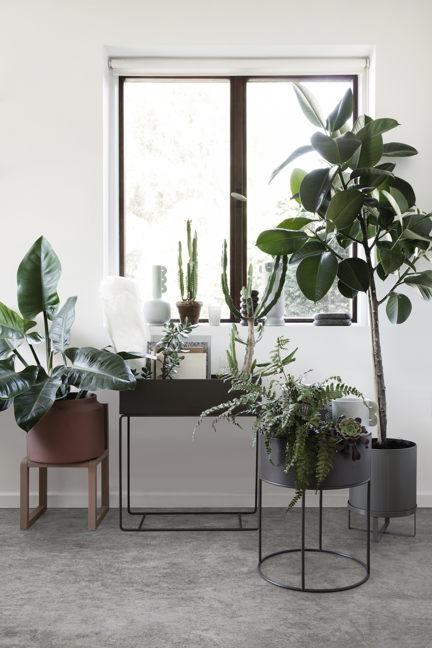 簡約的造型,纖細筆直的櫃角加上上層的筒狀設計,形成實用且優雅經典的外觀。狀設計避免植栽掉落,安全穩固;細窄修身的設計讓它能放置在樓梯轉角、玄關等小空間中也不影響整體動線。