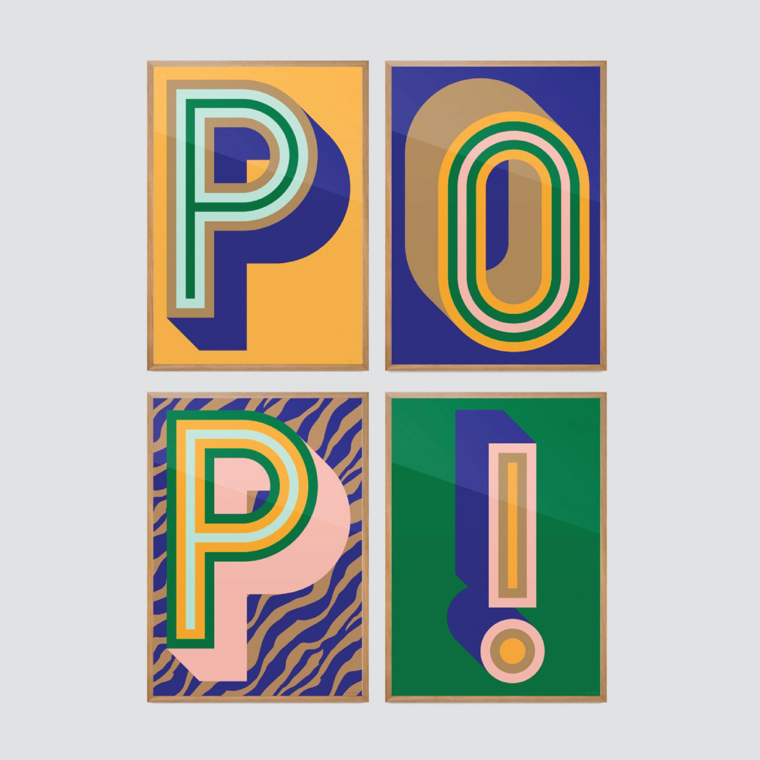 POP 普普海報以 Playtype 最擅長的字母設計加入普普藝術的經典元素,創造出顏色大膽、對比強烈的海報。