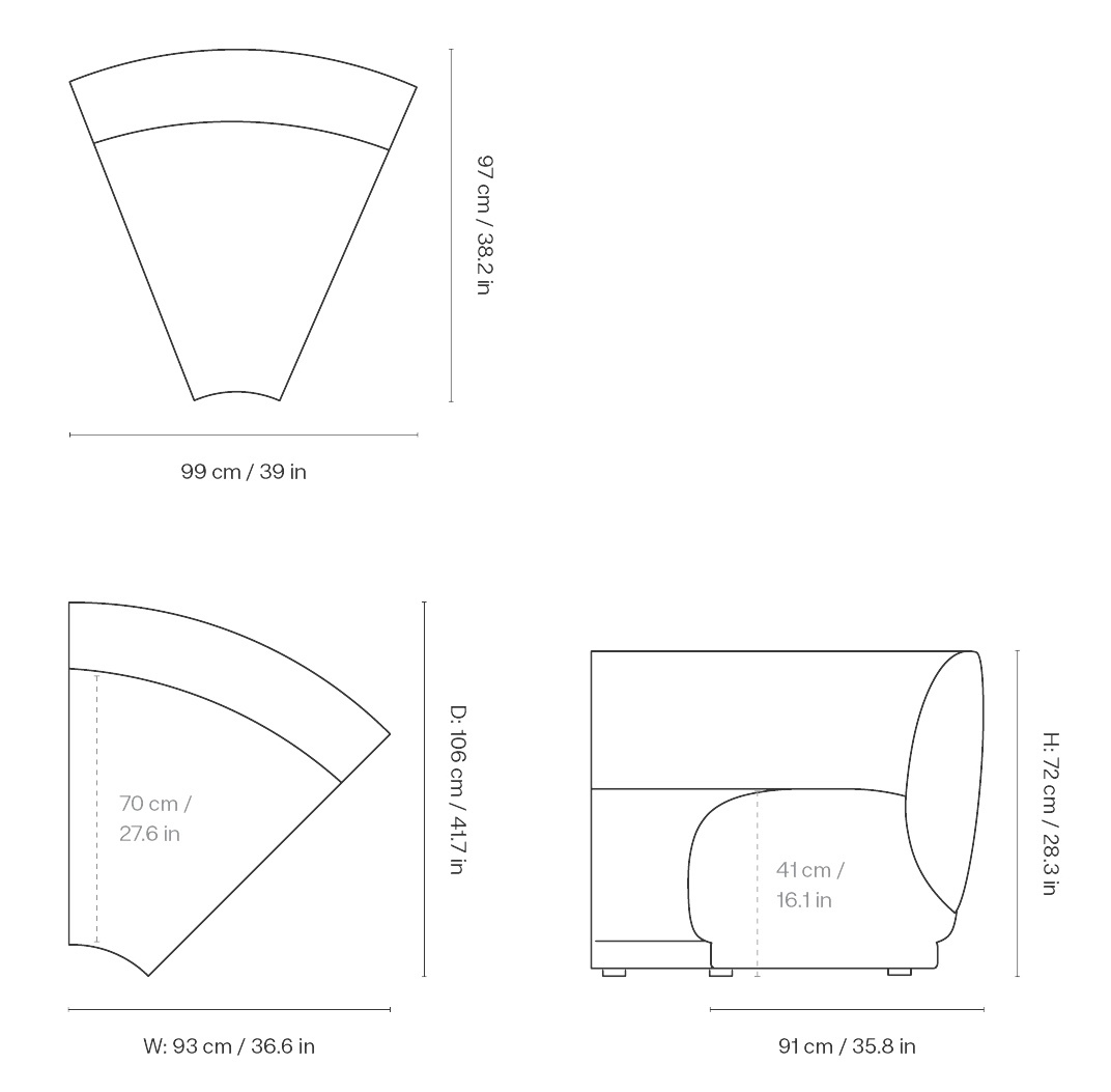 保留了 Rico 系列的招牌弧線設計,座位也加深了,坐起來更舒服、更有份量。結構選用 FSC™ Mix 認證木材,不只適合居家,也很適合放在飯店大廳或休息空間。