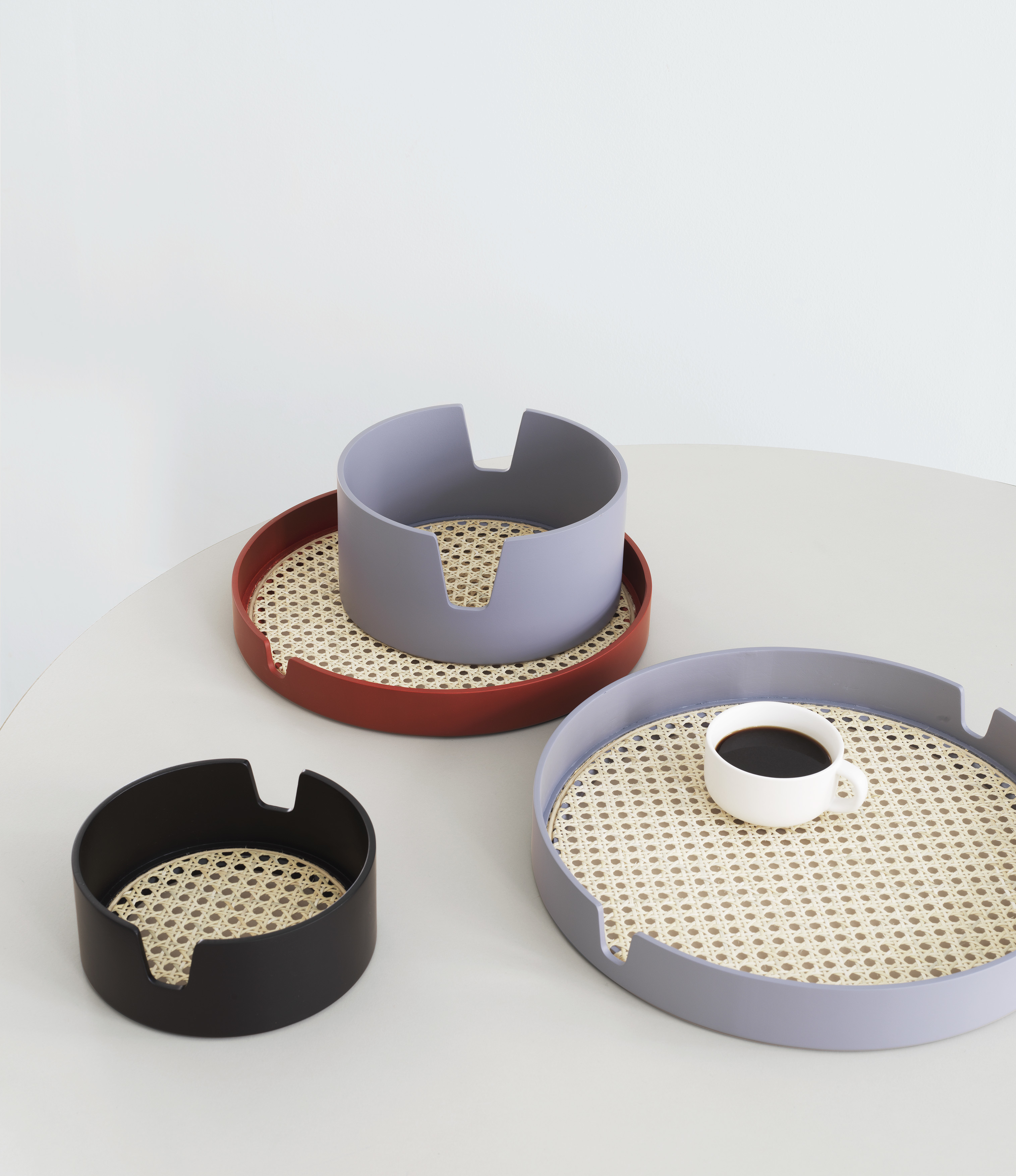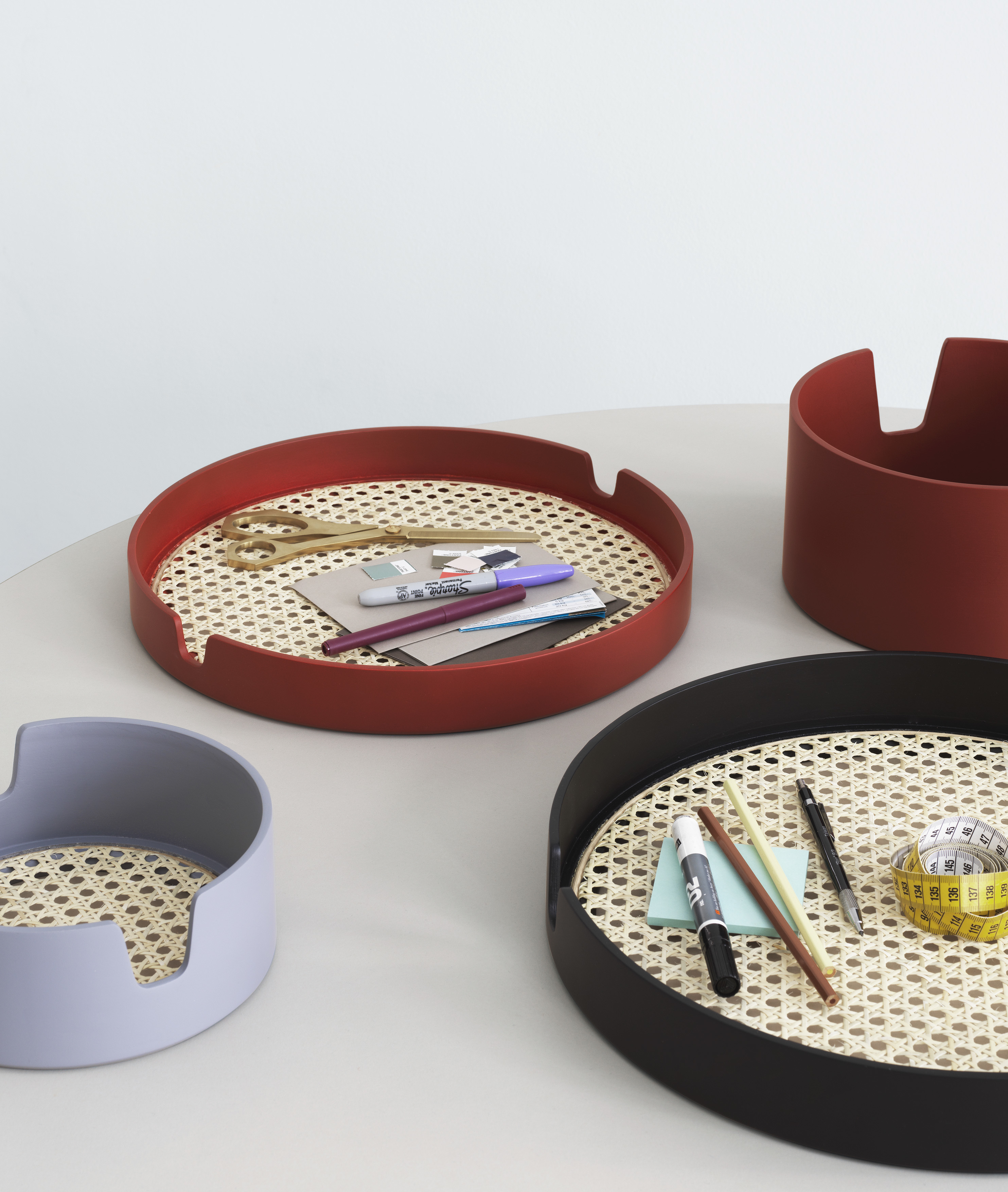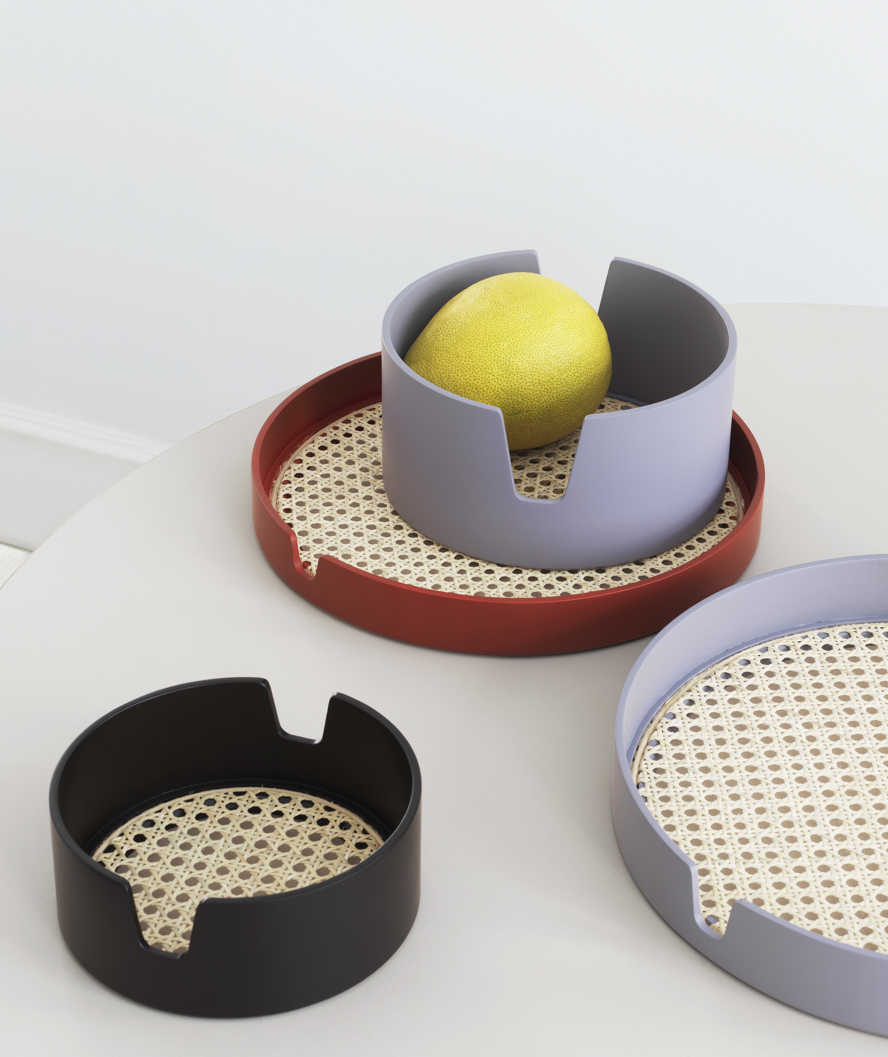 木質托緣以對稱有機的曲線開口,讓托盤不僅能好拿取,也讓托盤更具生動表情。以經典復古的材質與工藝結合現代造型與色系,「沙龍」托盤本身就是一件優雅的藝術品,既內斂又時尚的設計語彙,賦予傳統工藝編織柳條不同的風采面貌