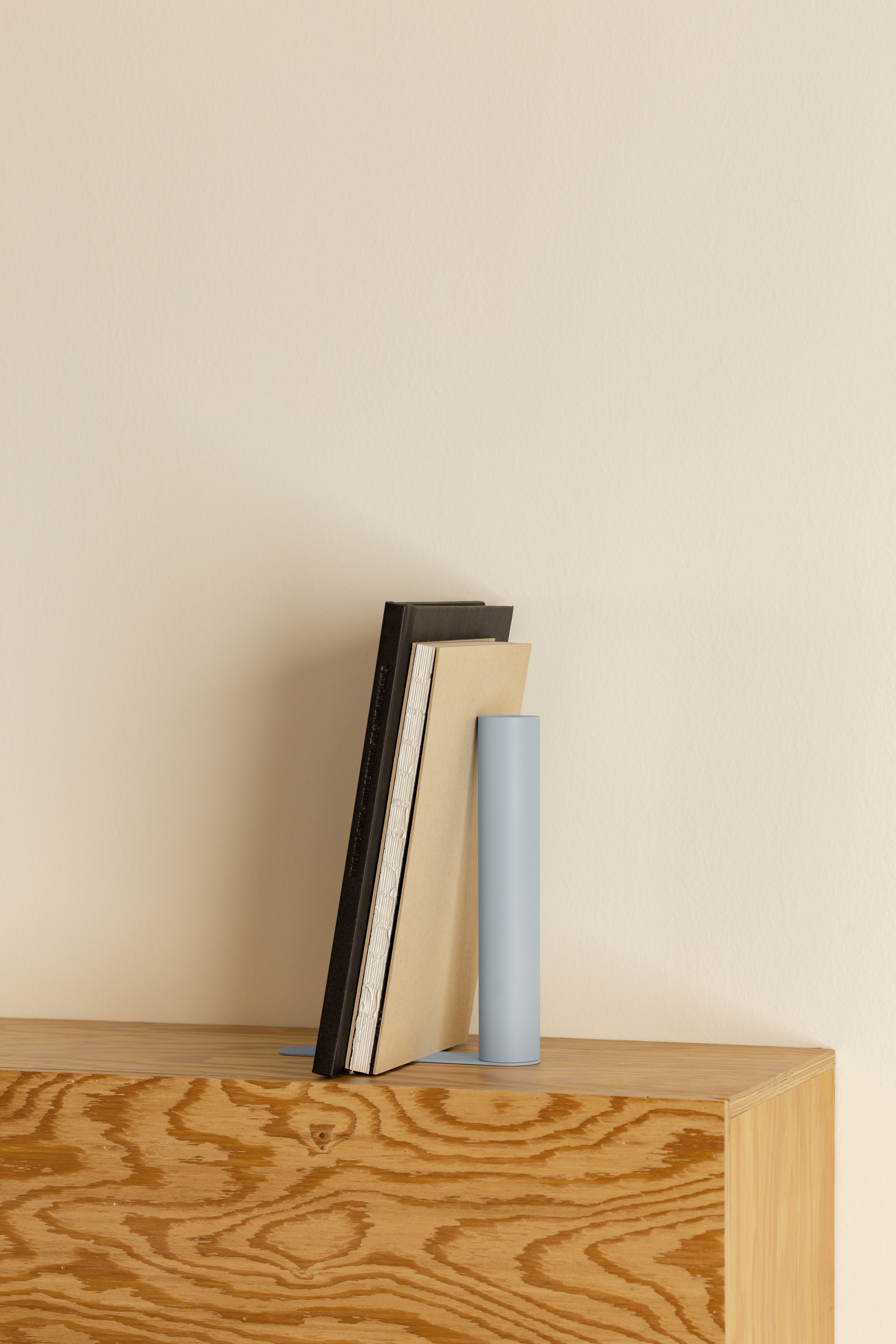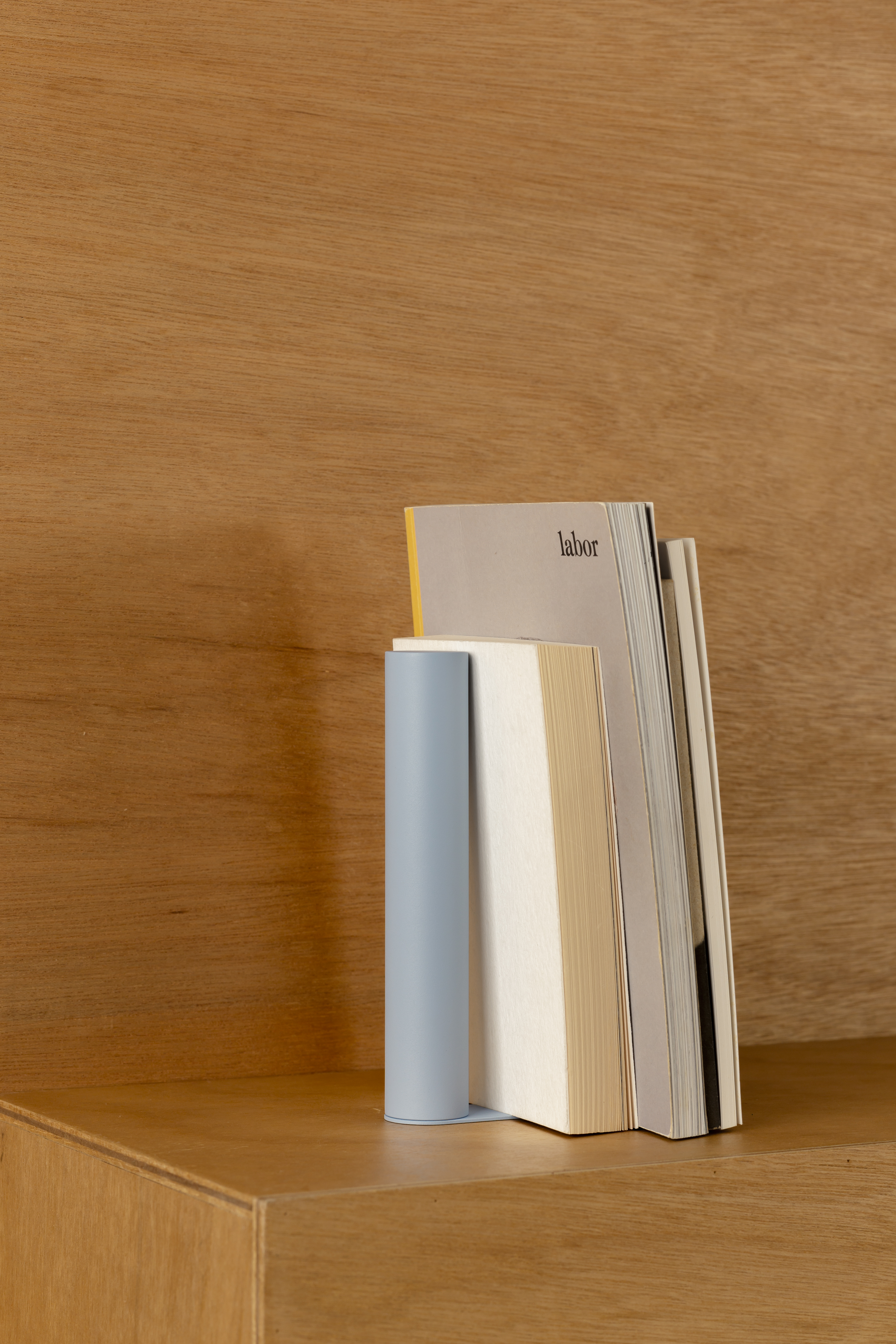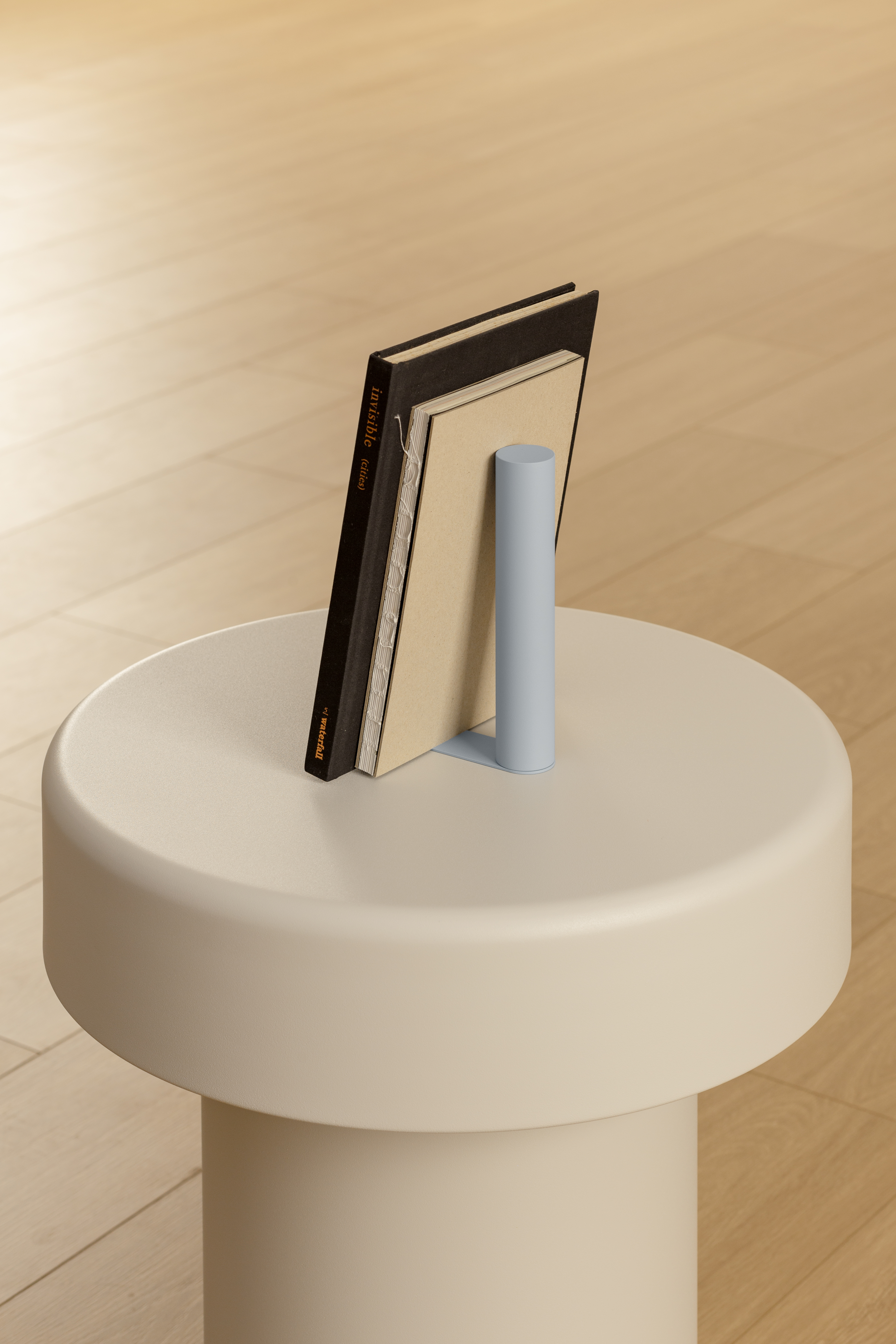 由兩個幾何體,圓柱與圓弧鐵片所組成,只用一個螺絲便能輕鬆組裝。以不顯眼卻又有趣的方式來融入生活,也是書桌或書架上整理書籍紙張的好幫手!