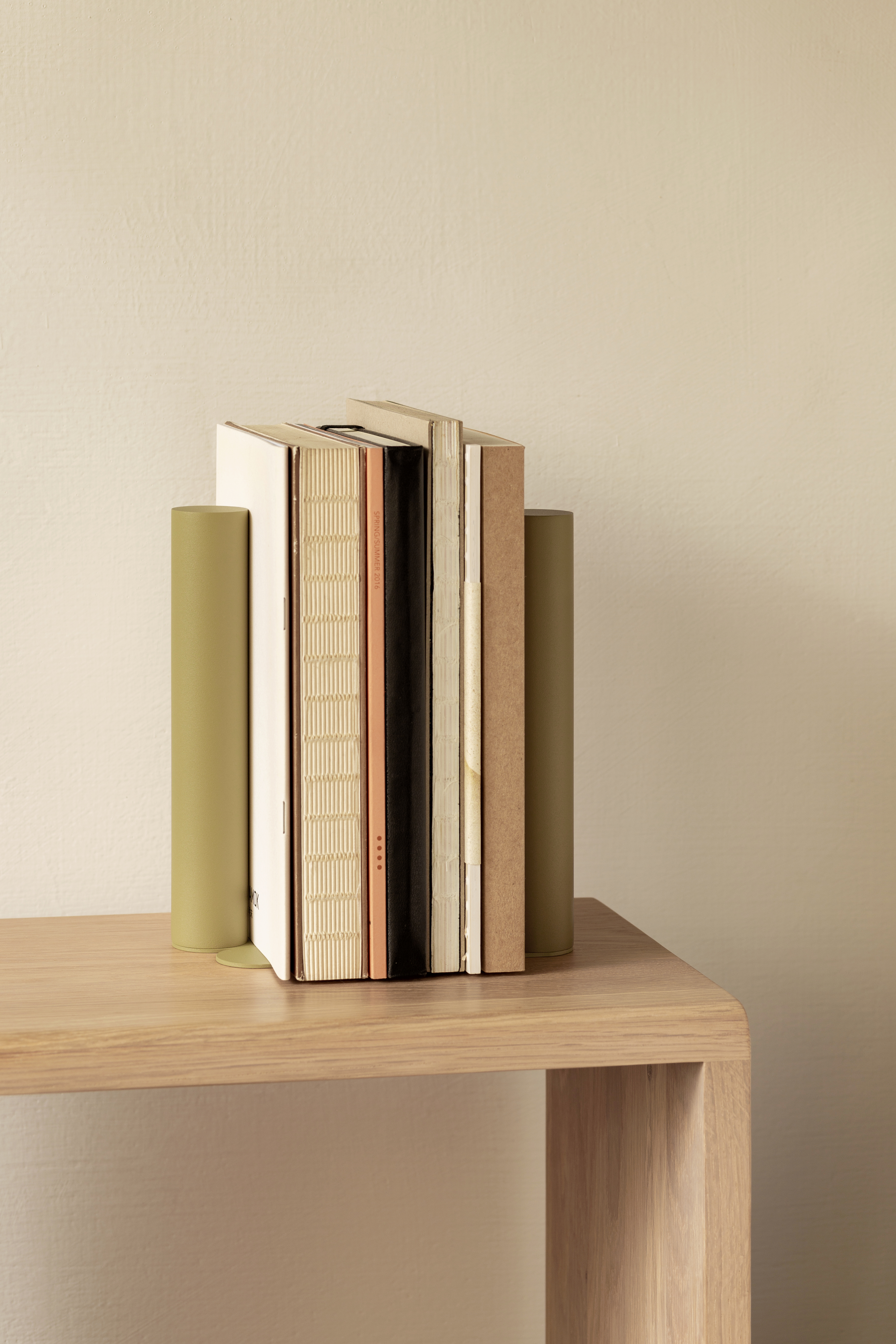 由兩個幾何體,圓柱與圓弧鐵片所組成,只用一個螺絲便能輕鬆組裝。以不顯眼卻又有趣的方式來融入生活,也是書桌或書架上整理書籍紙張的好幫手!