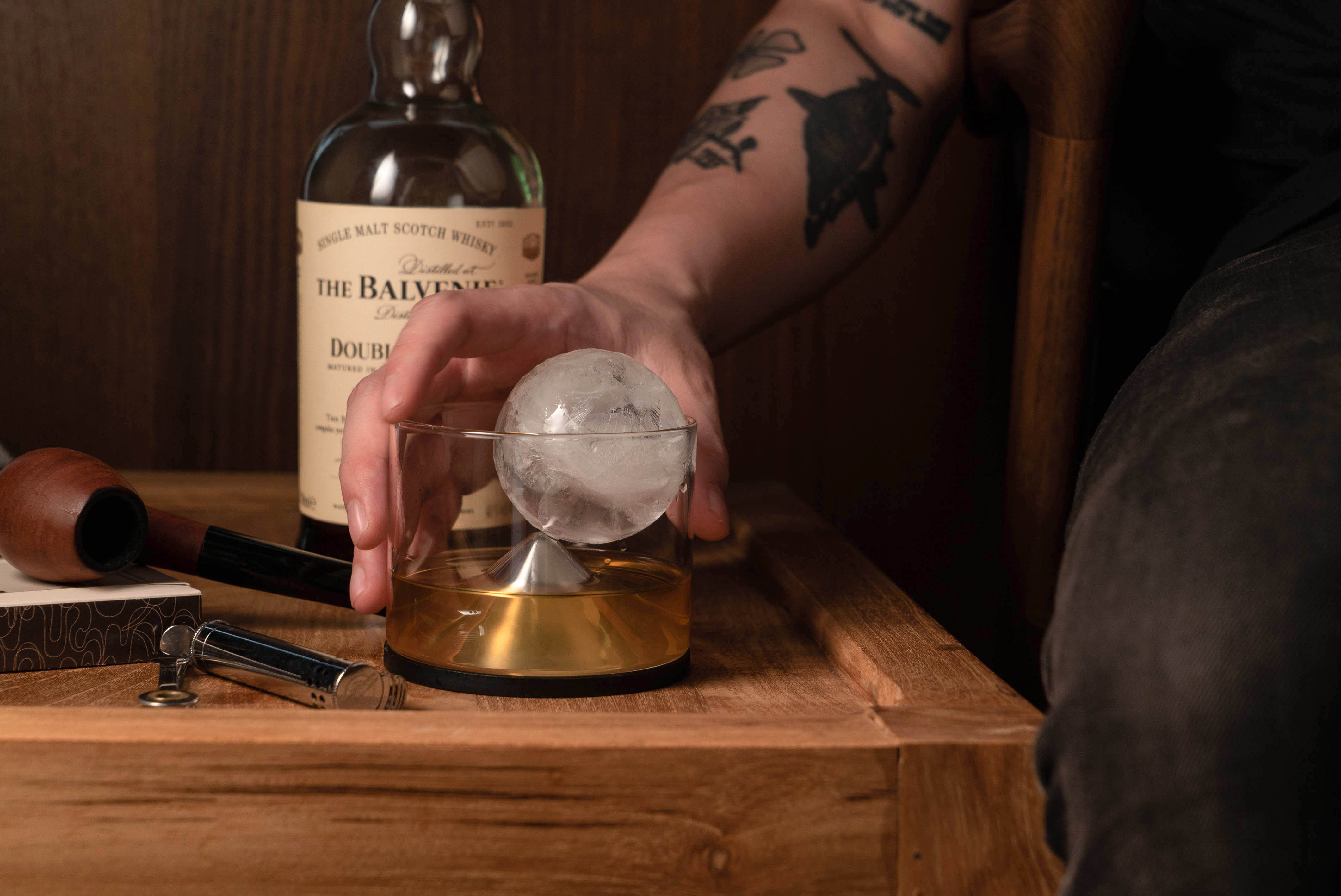 以手工吹製玻璃結合不鏽鋼保冰盤,有著典雅的山峰意象,完美結合降溫、醒酒、保冰的三合一飲酒神器,讓你享用風味最純淨、香氣更飽滿,且每一口都沁涼的冰鎮美酒。