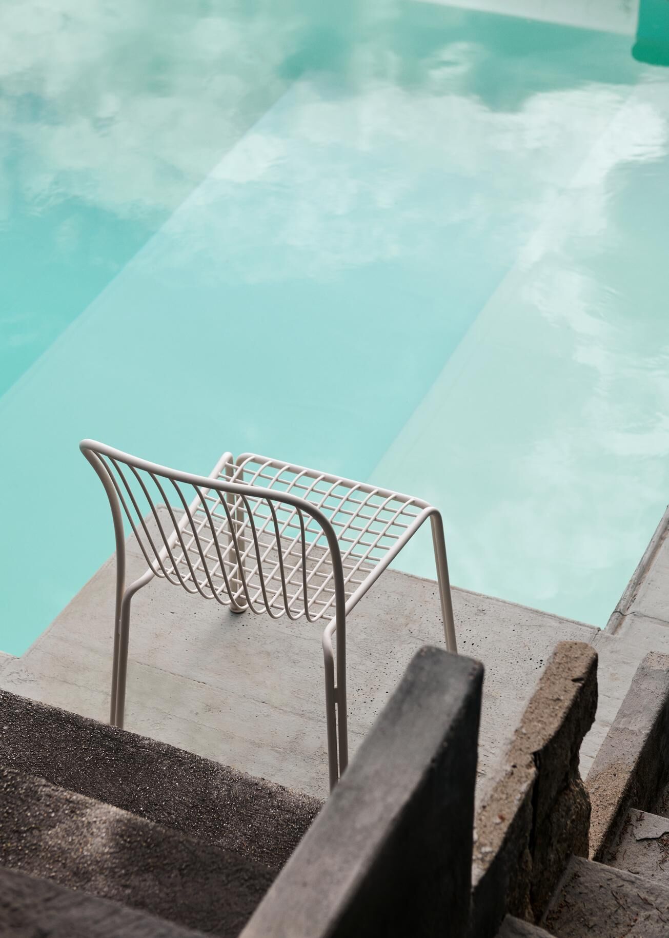 堆疊式單椅以堅實鋼架與網格座面構成,延續北歐對結構美學與機能性的平衡追求,為整體系列奠定優雅、靈活的基調。