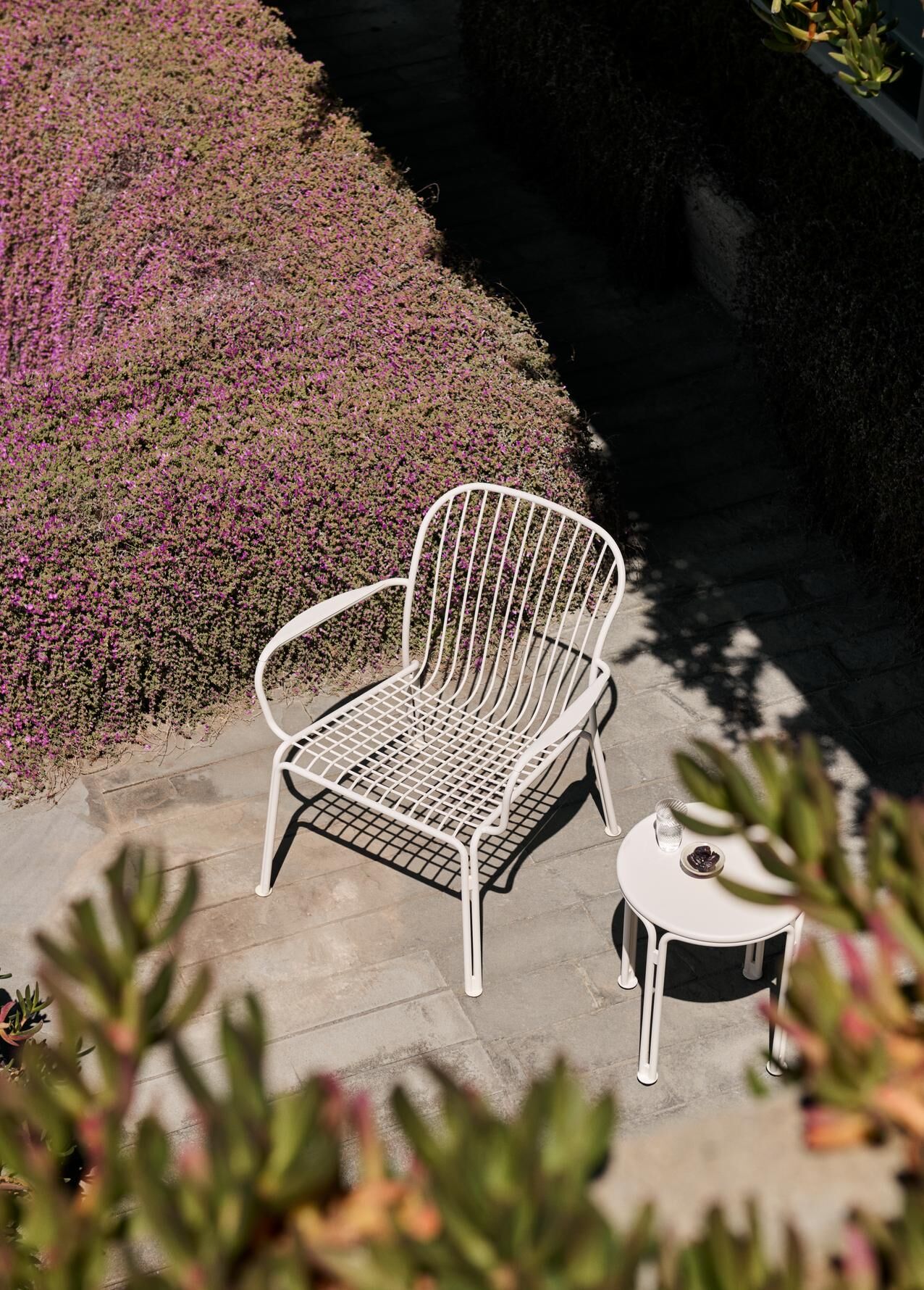 整體以堅固鋼材打造,不只耐用,也展現出簡約的質感美學。像是邊桌,可以是放咖啡的桌面,也能當作多一個座位,隨手、隨心。